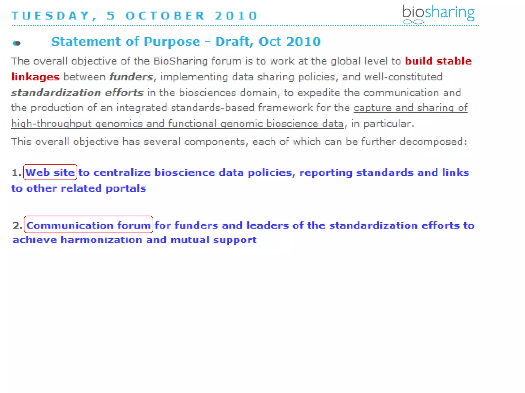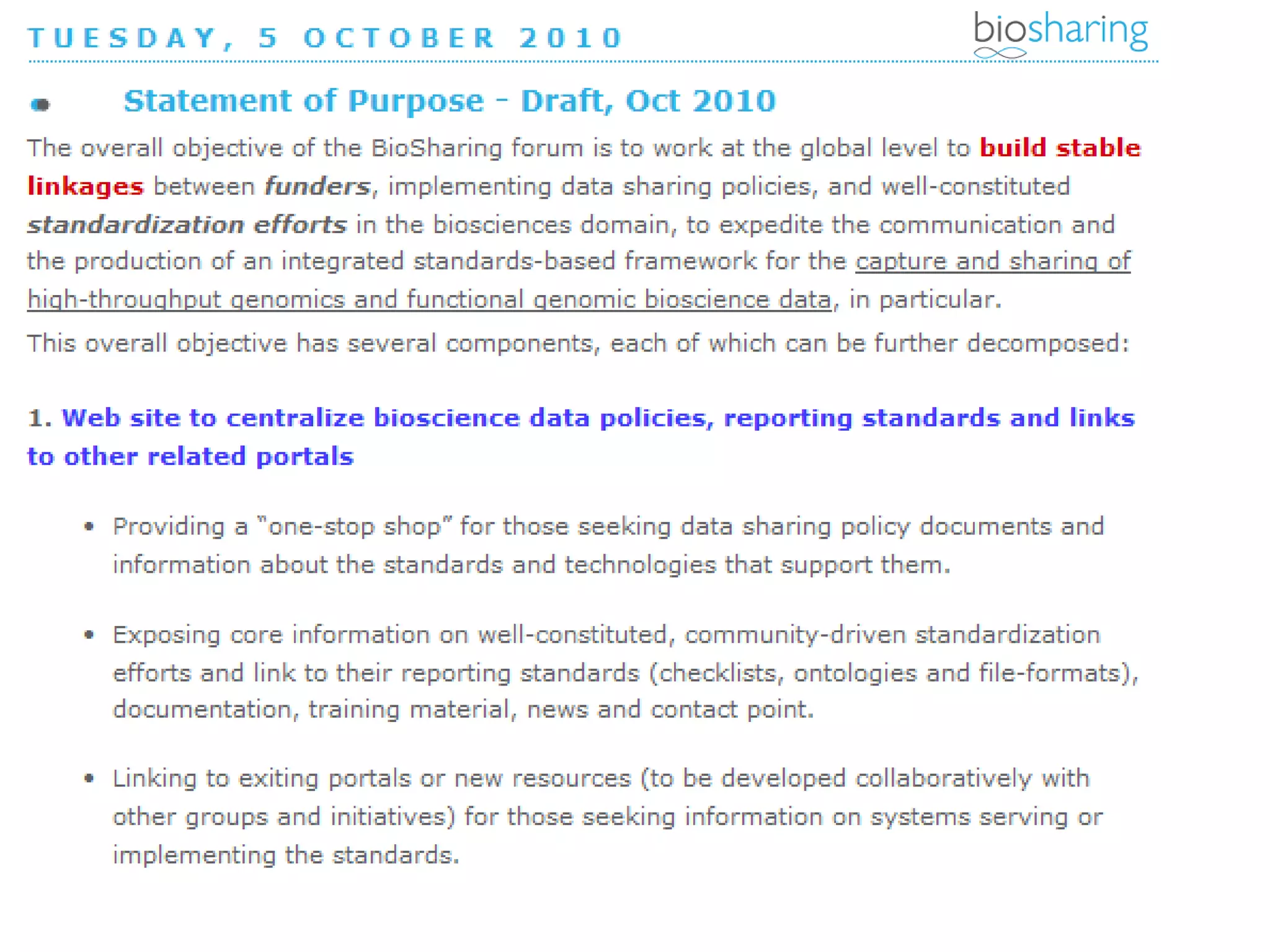 Susanna-Assunta Sansone presented at the International Conference on Systems Biology on standards to enable sharing of experimental data and metadata. Three types of standards are needed: minimum reporting checklists, controlled vocabularies and terminologies, and data exchange formats. Journals, biocurators, and funders are developing these standards to support comprehensible, reusable, and reproducible research. However, navigating the various standards can be challenging, and communication is needed between standards groups and other stakeholders.