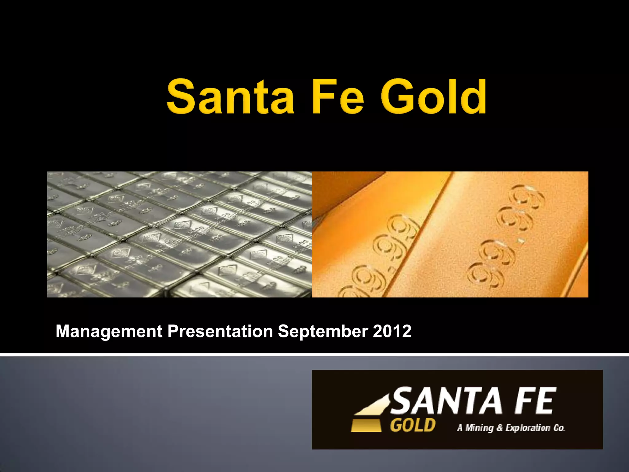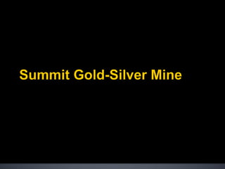 This presentation by a mining company provides an overview of its operations and growth prospects. It discusses its producing Summit Gold-Silver Mine, potential acquisition of the Mogollon Gold-Silver Project which could double its resources, and Ortiz Gold Project which has over 1.7 million ounces of historical gold resources. The presentation highlights the company's transition to producer status, increasing cash flow outlook from its assets, low cost of production, and pursuit of strategic acquisitions and a senior stock exchange listing to further create shareholder value.