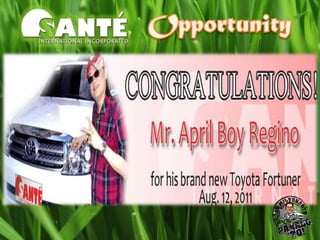 This document provides information about Santé International, a producer and manufacturer of barley powder in New Zealand. It discusses the health benefits of barley, the company's management team and product offerings. It also describes the company's multi-level marketing compensation plan, including details on earning bonuses from building a team and sales network through the business opportunity.