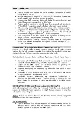 This document contains the resume of Santhosh Raj.A.M. It summarizes his professional experience, qualifications, and skills. He has over 8.5 years of experience in finance and currently works as an Associate Manager of FP&A at Walmartlabs. Previously, he held roles such as Deputy Manager of FP&A and Cost Management at ING Life Insurance and Senior Executive in the Global Finance Team at Synovate India Private Limited. He possesses strong skills in financial planning and analysis, management reporting, and cost management. He holds an MBA in Finance and HR as well as BBM in Finance.