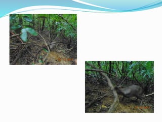 The saola has long sharp horns up to 20 inches long in both males and females. They live in the forests of Vietnam and Laos, eating leafy plants and fig leaves. Major threats include hunting through snares intended for other animals, loss of habitat to agriculture and infrastructure, and hunting for their prized horns. With a population possibly as low as a few dozen, the saola is a top conservation priority due to its rarity, uniqueness, and vulnerability.