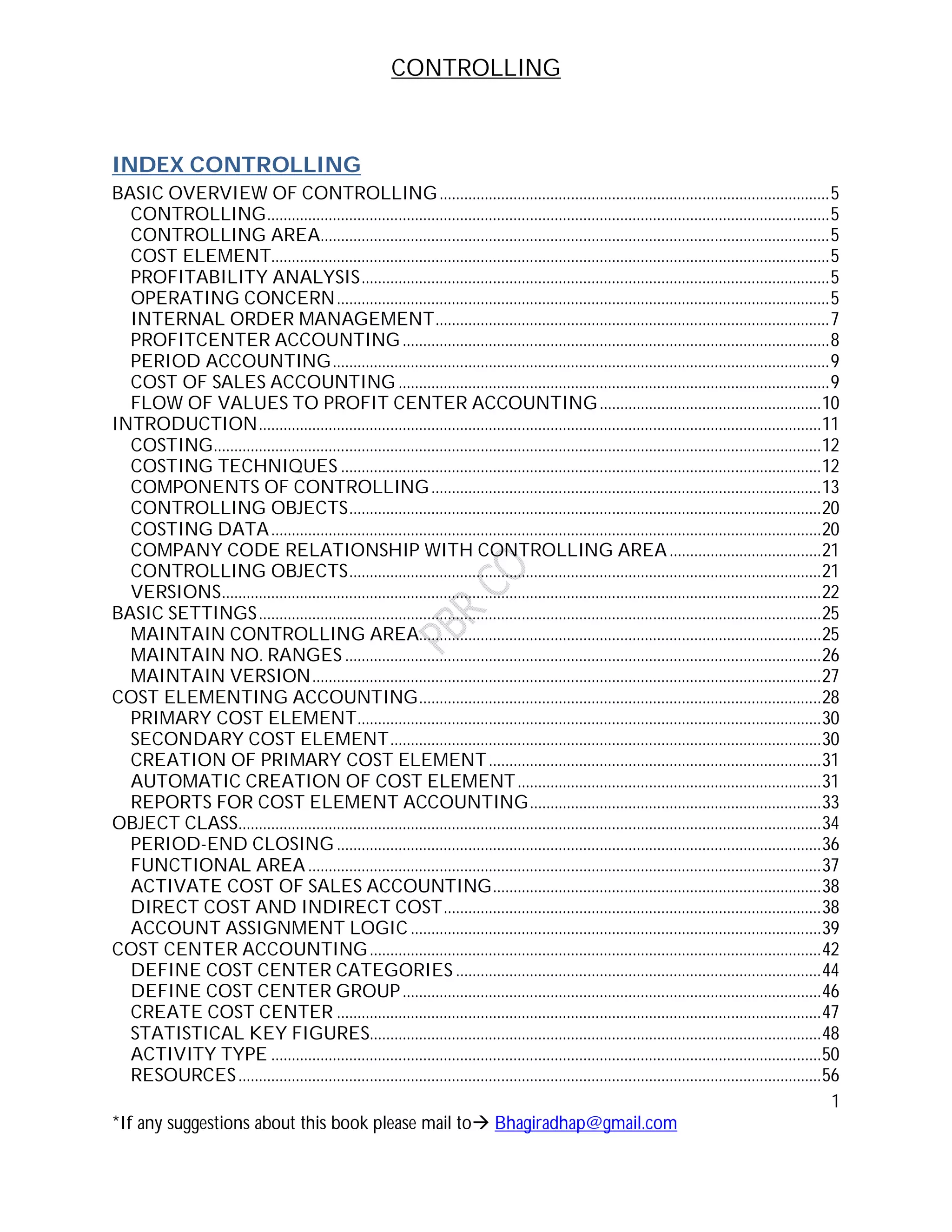 This document provides an overview of controlling and its key components. Controlling is used to prepare internal reports to monitor costs within an organization and identify unnecessary expenditures. The main components discussed include cost and revenue element accounting, overhead cost controlling using cost center accounting, internal orders, and activity based costing. Cost center accounting is used to manage costs and revenues within a contained cost accounting unit. Internal orders are used to monitor costs of short-term jobs and tasks.