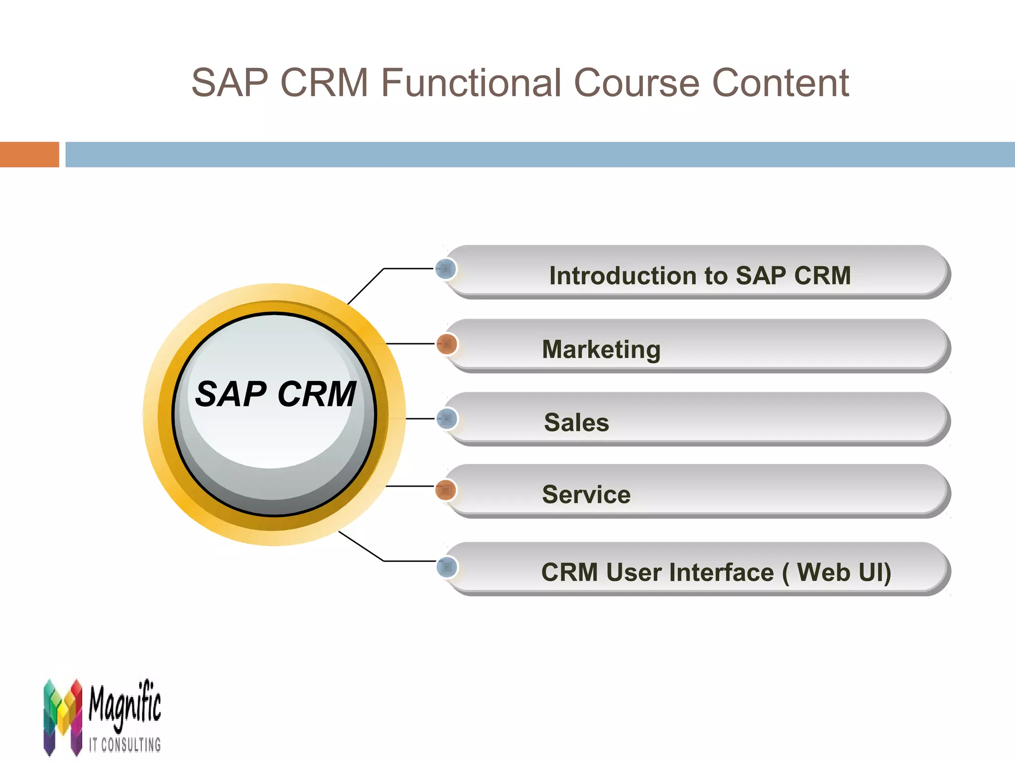 The document outlines the training content for SAP Customer Relationship Management (CRM), covering the fundamentals of marketing, sales, and service aspects of the CRM system. It includes details on the user interface, customization, business partner management, transaction processing, and activity management. Additional topics include customer segmentation, campaign management, order and service management, and enhancing the CRM user experience.