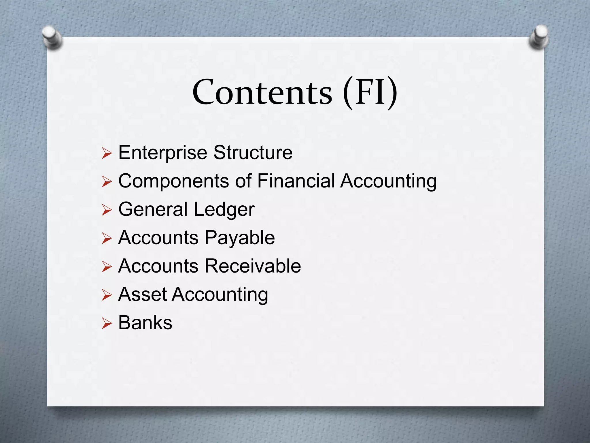 This document provides an overview of key components and features of financial accounting in SAP, including the general ledger, accounts payable, accounts receivable, asset accounting, and bank accounting. It describes the organizational structure for accounting including company codes and charts of accounts. It also lists features such as real-time integration between modules, document control functions, multicurrency support, and automatic processes for payments, depreciation, and more.
