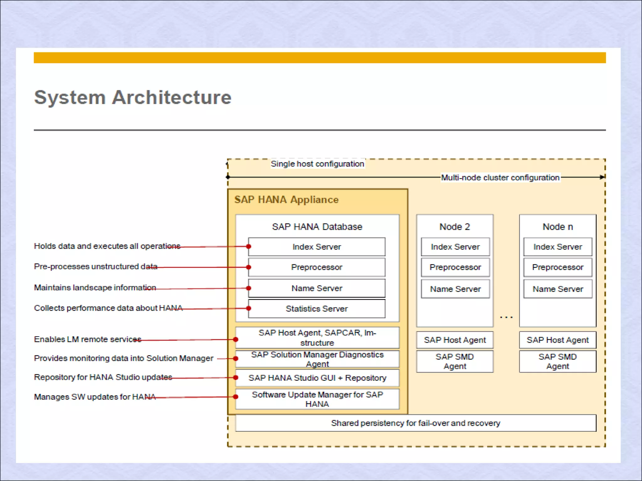 The document provides an overview of SAP HANA, a flexible in-memory database designed for real-time analysis of large volumes of data. It highlights the architecture, scalability, and data provisioning capabilities, emphasizing its support for both transactional and analytical processing. Additionally, it outlines the hardware innovations and various configurations of SAP HANA appliances, demonstrating its enhanced performance and efficiency.