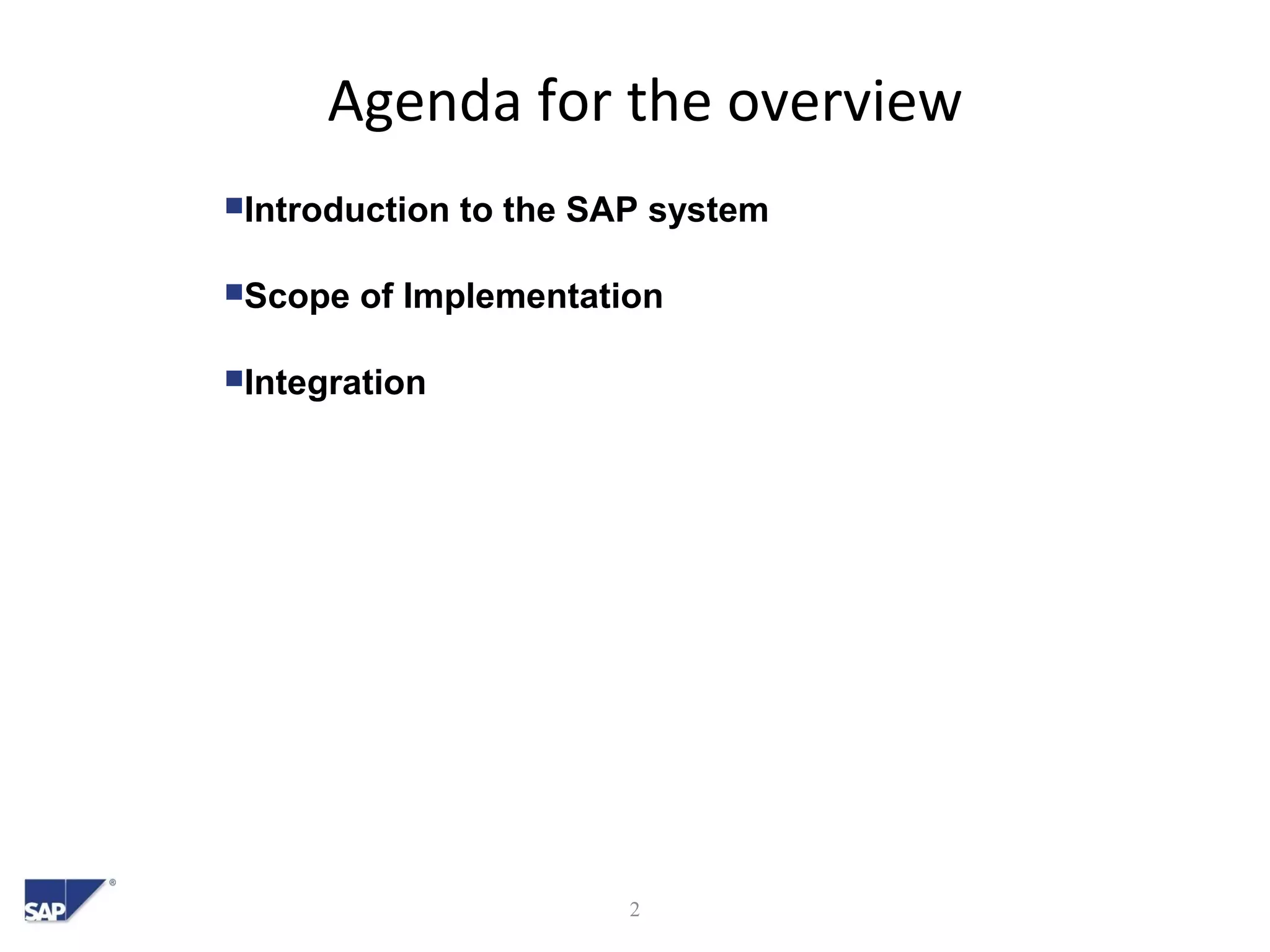 - The overview discusses SAP's system landscape, business benefits, and ASAP methodology for implementation projects.