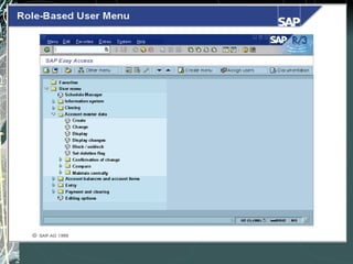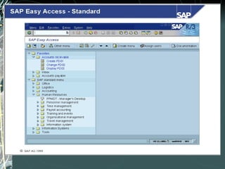 The document provides an overview of SAP and ERP systems. It discusses business processes without ERP and how ERP solutions like SAP integrate various functions like sales, production planning, inventory, purchasing etc. It describes the key benefits of ERP in eliminating data duplication and improving information flow. It also provides details on the evolution of SAP products, architecture of SAP R/3 and its various modules.