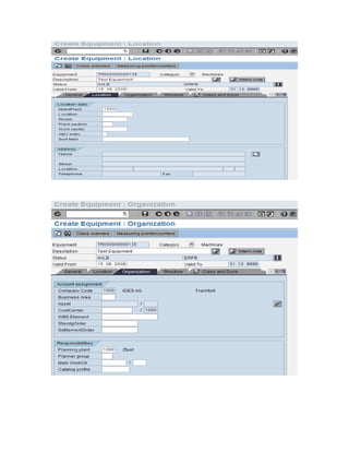 This document provides an overview of key master data used in SAP Plant Maintenance, including functional locations, equipment, bills of material, serial numbers, measuring points/counters, and work centers. It describes how this master data is structured and customized in SAP PM and how it is used to plan and record maintenance activities.