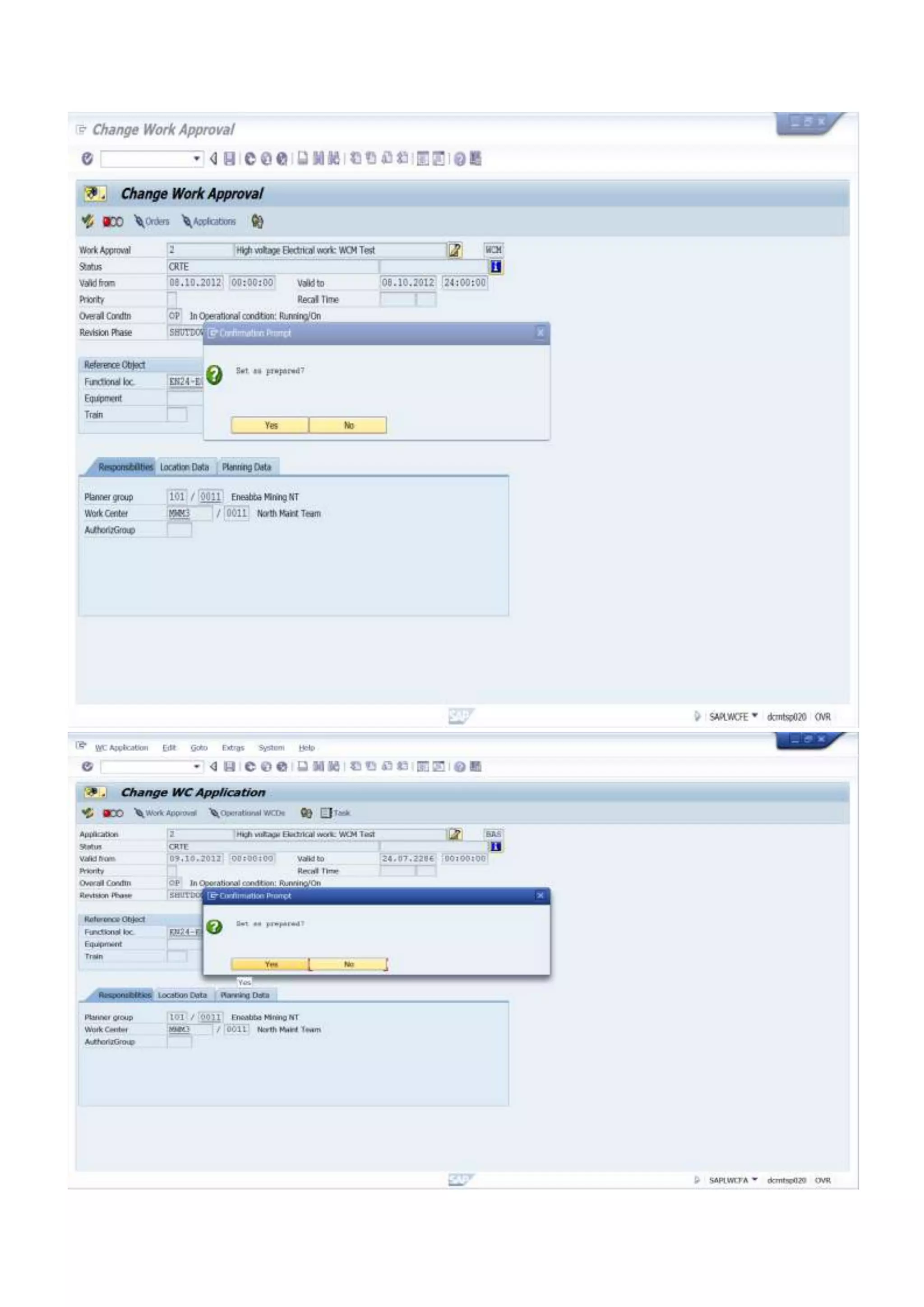 Only the Mid-WestMining 0011 plant has been activated for Work Clearance Management in SAN