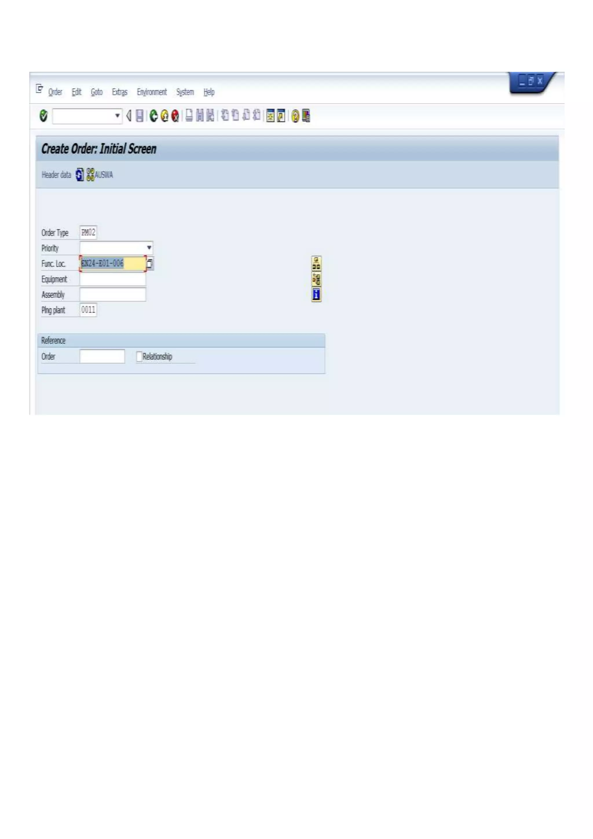 In this document PM Work Order type PM02 – Manually Generated Work Order is used.