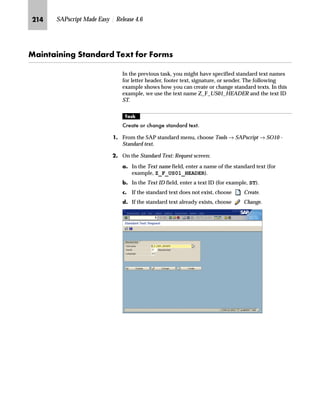This document provides an overview and introduction to SAPscript forms. It discusses what SAPscript forms are, how they are structured and processed. The guide is organized into multiple parts that cover learning SAPscript basics, modifying forms, and customizing applications for forms. Tools for working with forms like the Form Painter and PC Editor are also introduced. Standard and preconfigured SAPscript forms are examples.