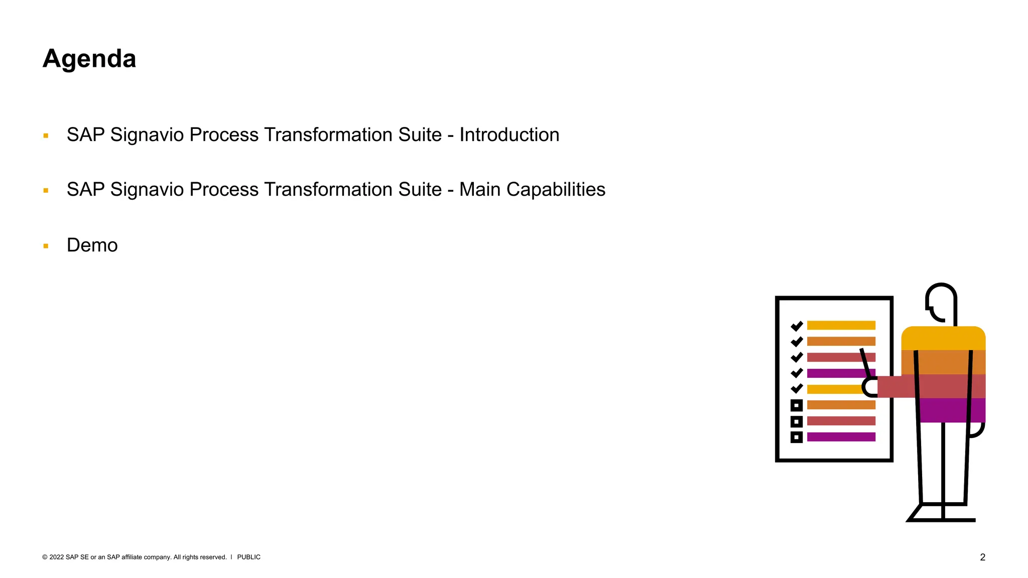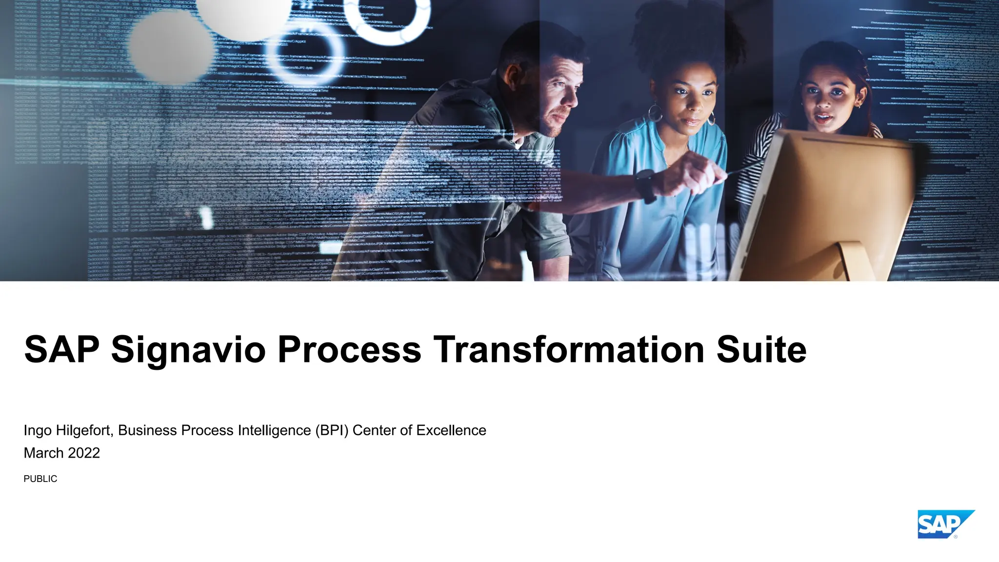 The document outlines the SAP Signavio Process Transformation Suite, highlighting its capabilities in continuous process transformation for enterprise and process excellence. It emphasizes the importance of collaboration, process analysis, and governance to achieve operational efficiency and agility. Additionally, it details specific features and benefits of the suite, including process automation, journey modeling, and stakeholder engagement.
