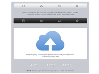 Документ обсуждает развитие клиентской части веб-приложений с использованием современных технологий, таких как jQuery и RequireJS. В нем описываются проблемы с устаревшими решениями и подходами, а также предлагаются методы рефакторинга кода и организации модульной структуры. Основное внимание уделяется созданию одностраничных приложений и взаимодействию с данными через AJAX и WebSocket.