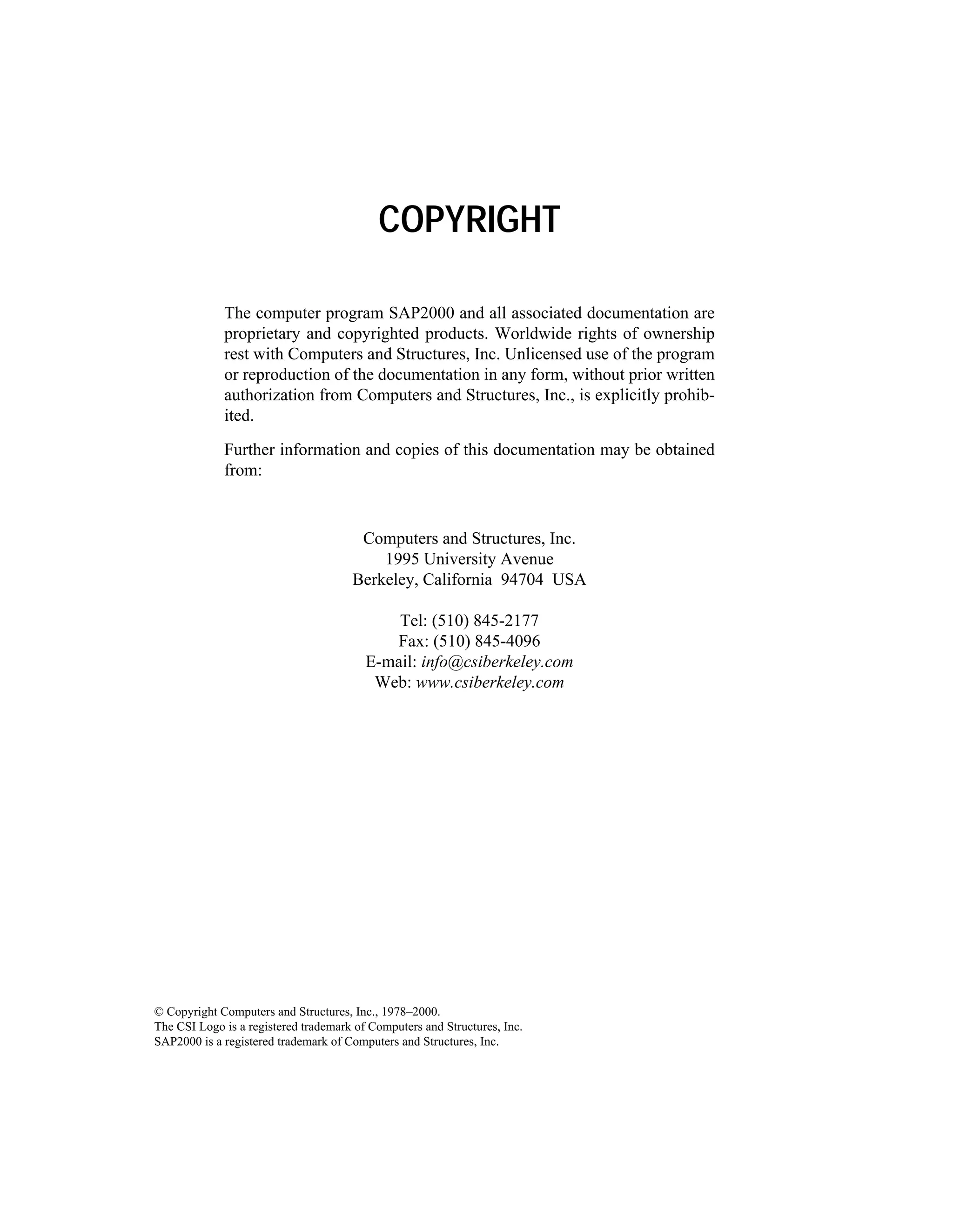 This document provides an overview and table of contents for the SAP2000 Concrete Design Manual. It describes the SAP2000 software for integrated finite element analysis and design of concrete structures. The manual covers design algorithms and guidelines for reinforcing concrete beams and columns according to several international codes, including ACI 318, AASHTO LRFD, CSA-A23.3, BS 8110, Eurocode 2, and NZS 3101.