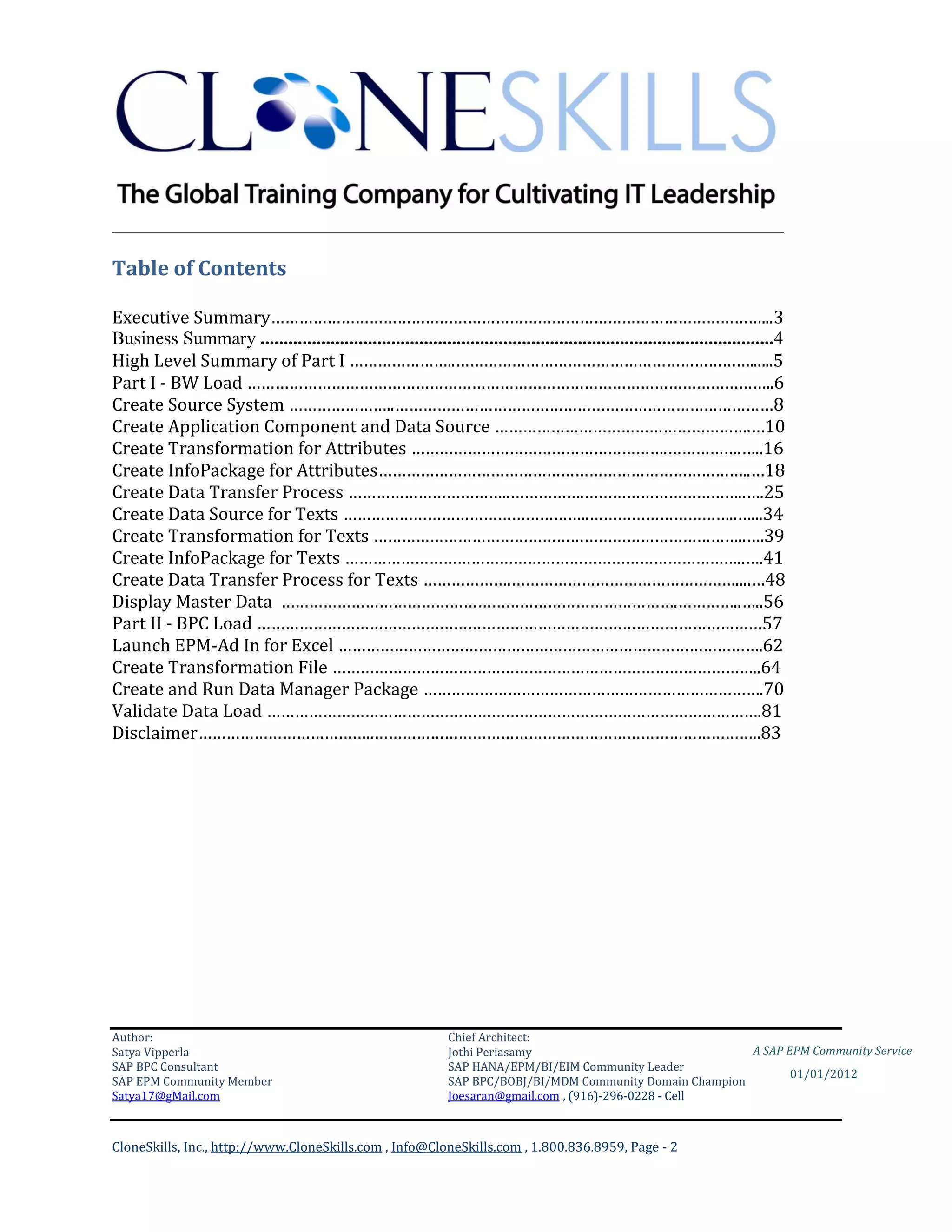 This document provides steps to load master data (attributes and texts) from flat files into SAP BW (InfoObjects) and then from BW into SAP BPC 10.0 NW dimensions. It involves two parts: