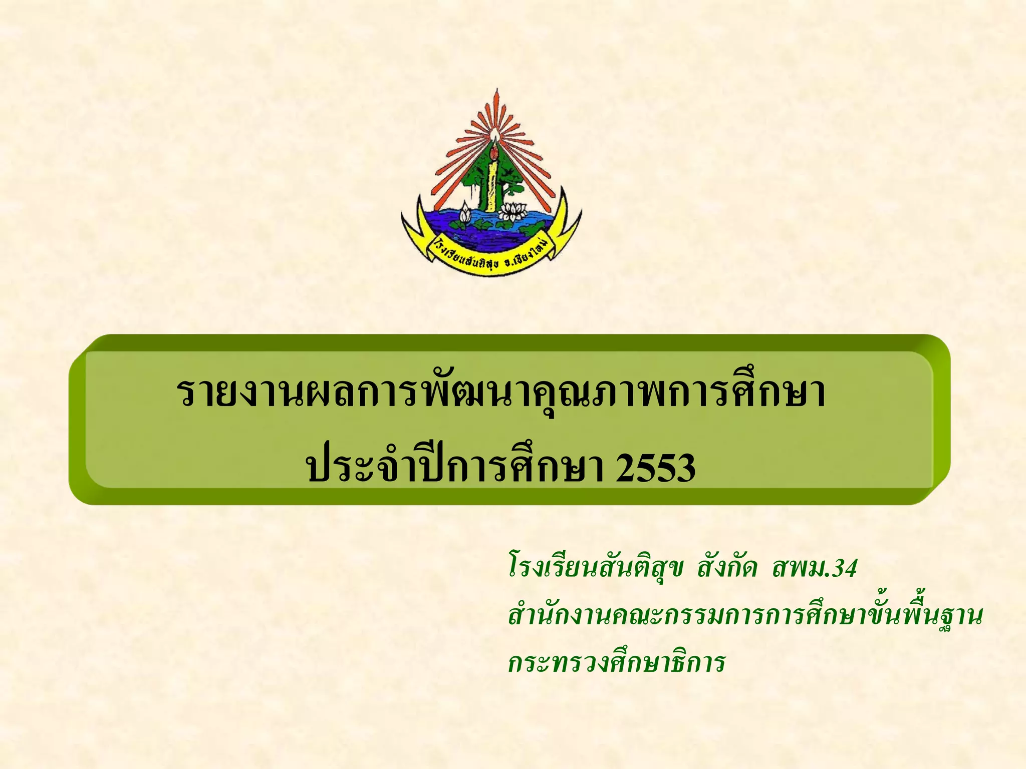 ประจําปการศึกษา 2553 โรงเรียนสนติสุข สังกัด สพม.34 ั สํานักงานคณะกรรมการการศึกษาขั้นพื้นฐาน กระทรวงศึกษาธิการ
