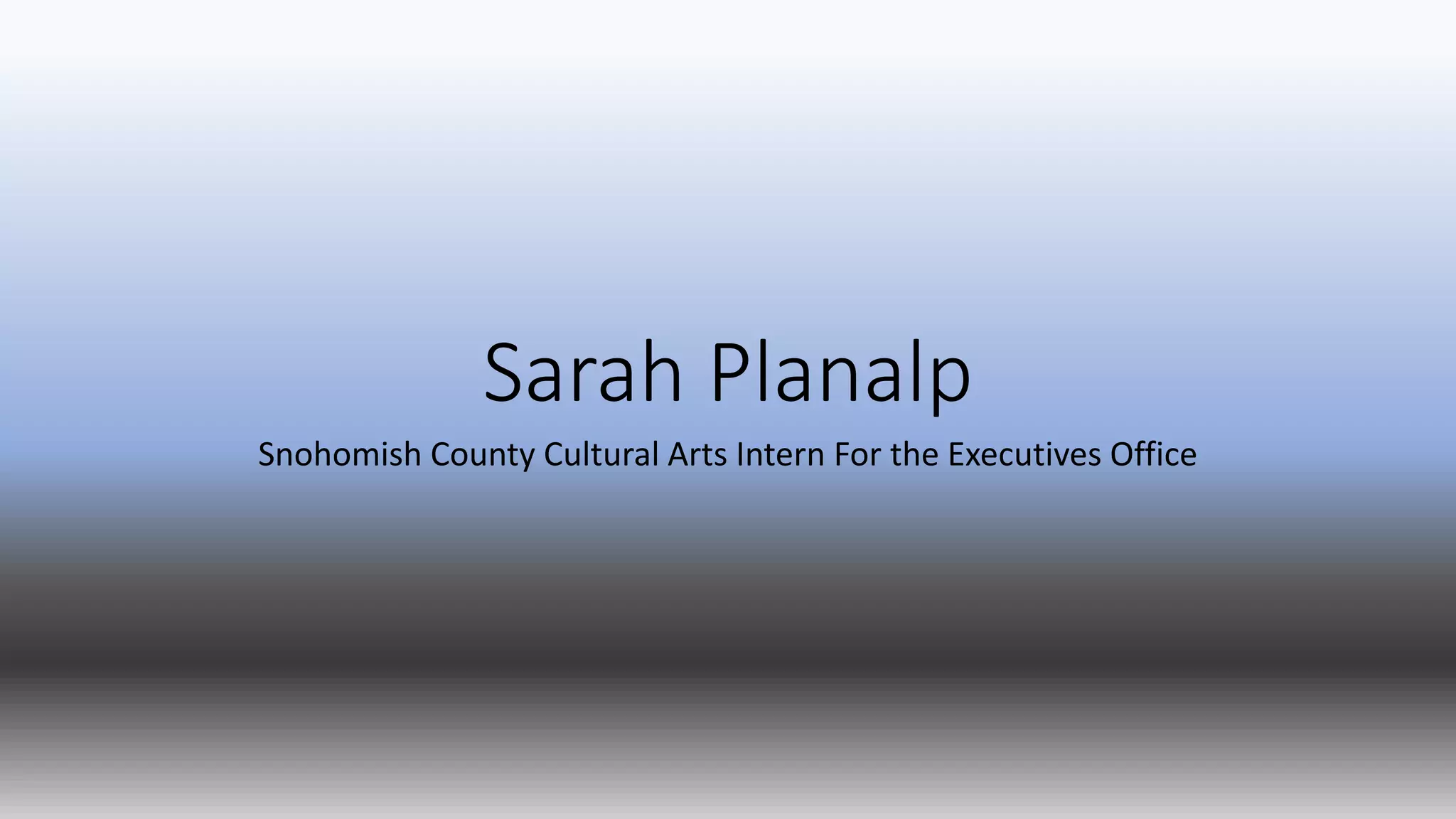 Sarah Planalp is an intern for the Snohomish County Cultural Arts department in the Executives Office. She works to promote arts and culture in Snohomish County. Her role supports the county executives vision of using arts to strengthen communities.