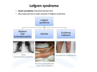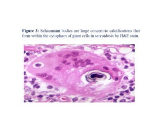 This document provides an overview of sarcoidosis, with a focus on its ocular manifestations and diagnosis. Some key points: