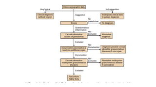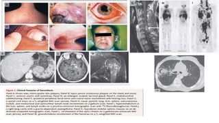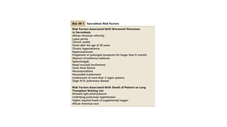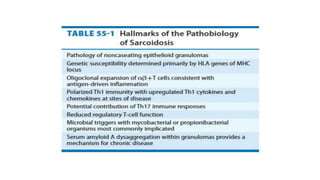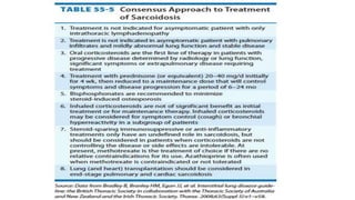 Sarcoidosis is a multisystem inflammatory disease primarily affecting the lungs, characterized by noncaseating epithelioid granulomas and has an unknown etiology. It has varying prevalence across demographics and can lead to diverse symptoms, with pulmonary involvement being most common, while also potentially affecting skin, eyes, liver, and nervous system. Diagnosis relies on clinical, radiologic, and histologic evidence, and treatment primarily involves corticosteroids, with many patients experiencing significant improvement or remission over time.