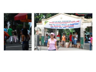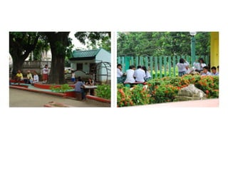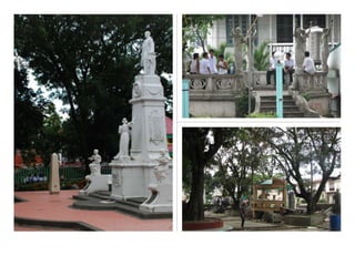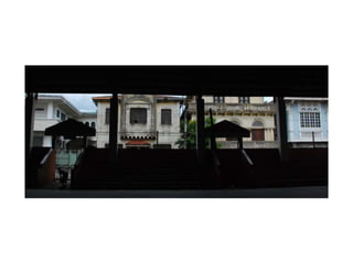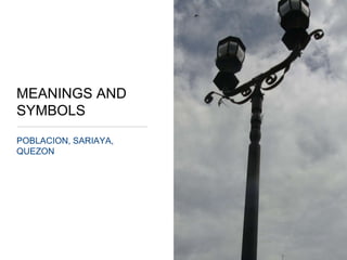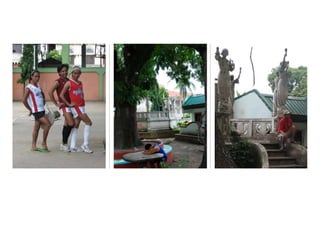 The document summarizes key places and characteristics of Sariaya, Quezon in the Philippines. It describes the historical church complex as the center of town, with the municipal hall and ancestral homes nearby. It notes the church serves as a convergence point for the community. It also discusses the public park and basketball courts as gathering spaces, and the mix of old ancestral homes and newer residential areas throughout the town.