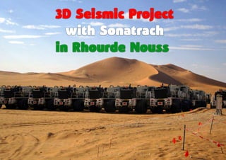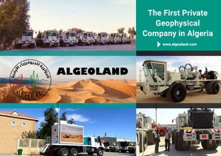 Algeoland is the first private geophysical company in Algeria specializing in seismic services for oil and gas companies. It was created in 2014 and operates two modern 3D seismic crews equipped with state-of-the-art recording equipment and vibrators. Algeoland aims to provide high quality geophysical services and support to its clients through experienced personnel, modern equipment, and robust logistics including camps, vehicles, and equipment mobilization.