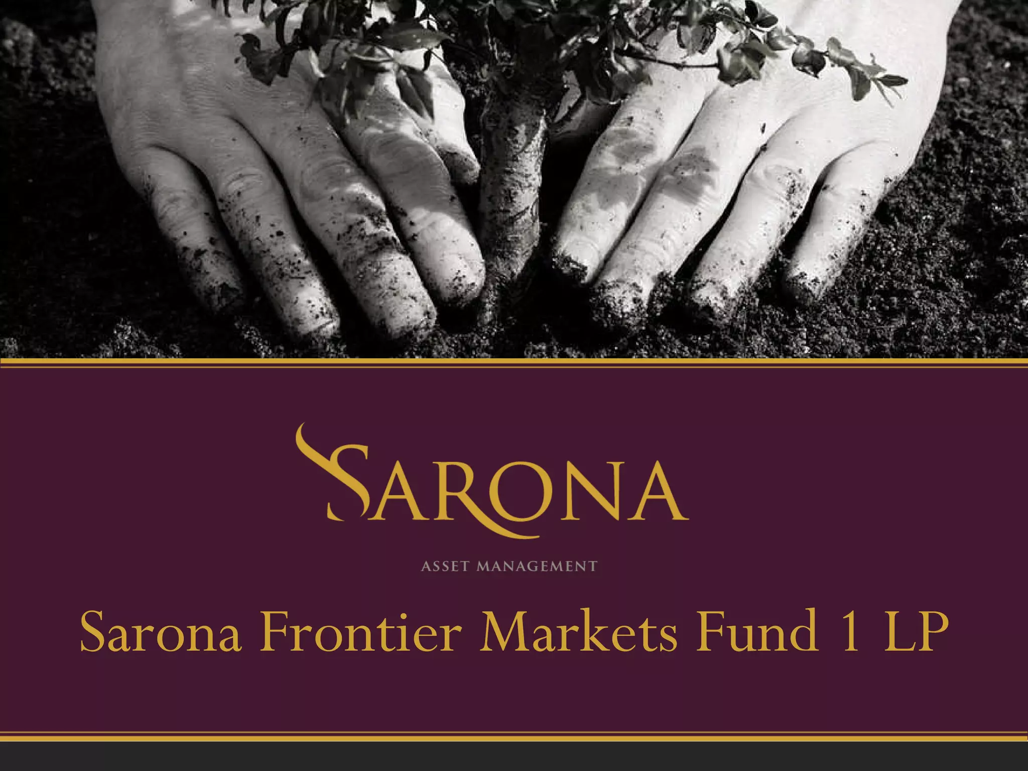 The document summarizes the Sarona Frontier Markets Fund 1 LP, a fund of funds that invests in small and medium enterprises in developing frontier markets to achieve financial returns as well as social and environmental impacts. The fund offers investors diversification across sectors and countries, targeting a 15% annual return over the long run while benefiting people and the planet. It is managed by Sarona Asset Management, which has over 50 years of experience investing in frontier markets and achieving returns that exceed targets.