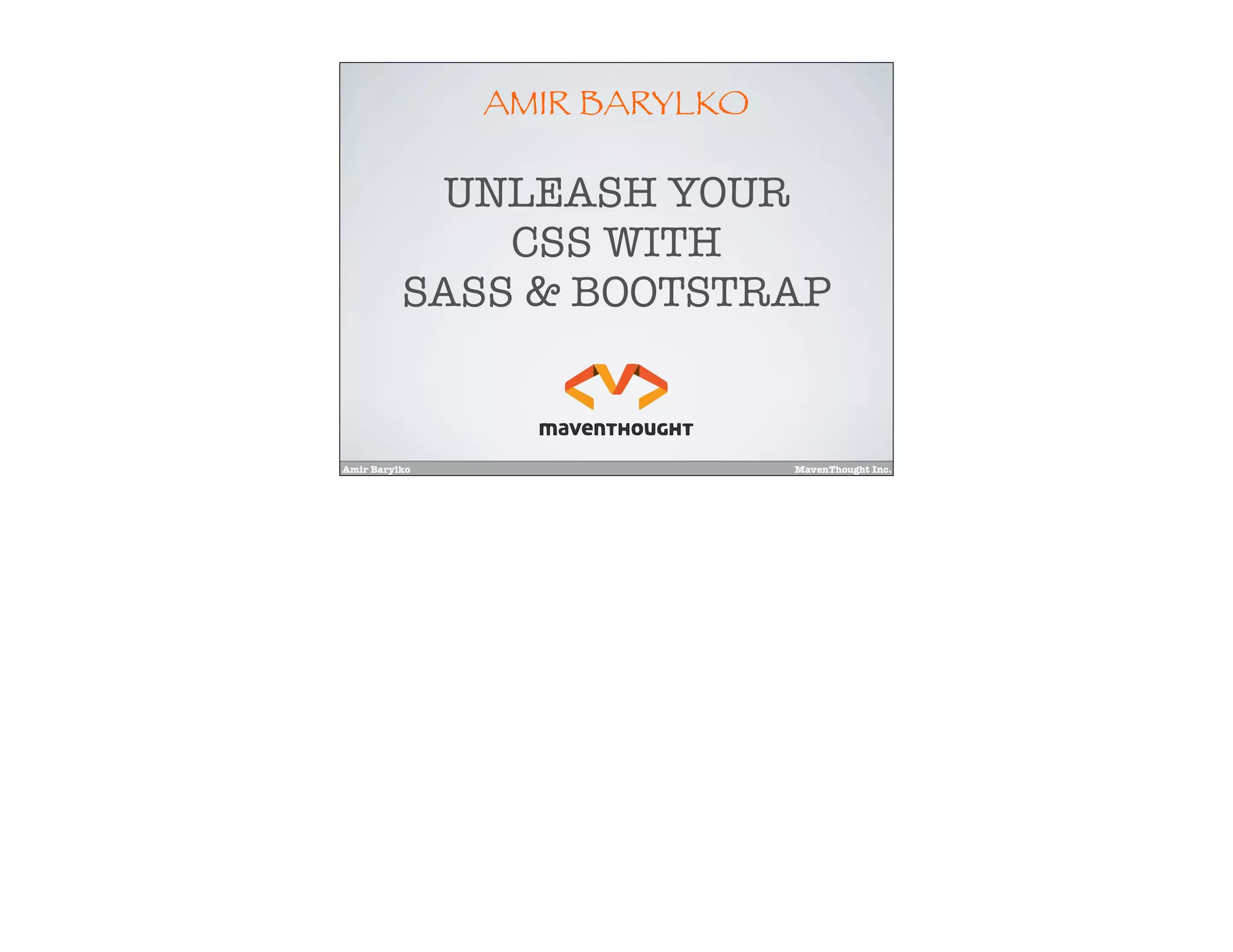 This document discusses using Sass and Bootstrap to improve CSS development. It introduces Sass features like nesting, variables, operations and functions that help avoid repetition and make CSS more maintainable. Bootstrap is presented as a framework that provides pre-built CSS components, a grid system, and mixins to support responsive design. The benefits of both tools are rapid development and cross-browser compatibility, though Bootstrap has a learning curve and may not be fully flexible. Resources are provided to learn more.