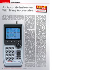 The document summarizes a test report of the Satcatcher Digipro C Max digital cable meter. Some key points:
