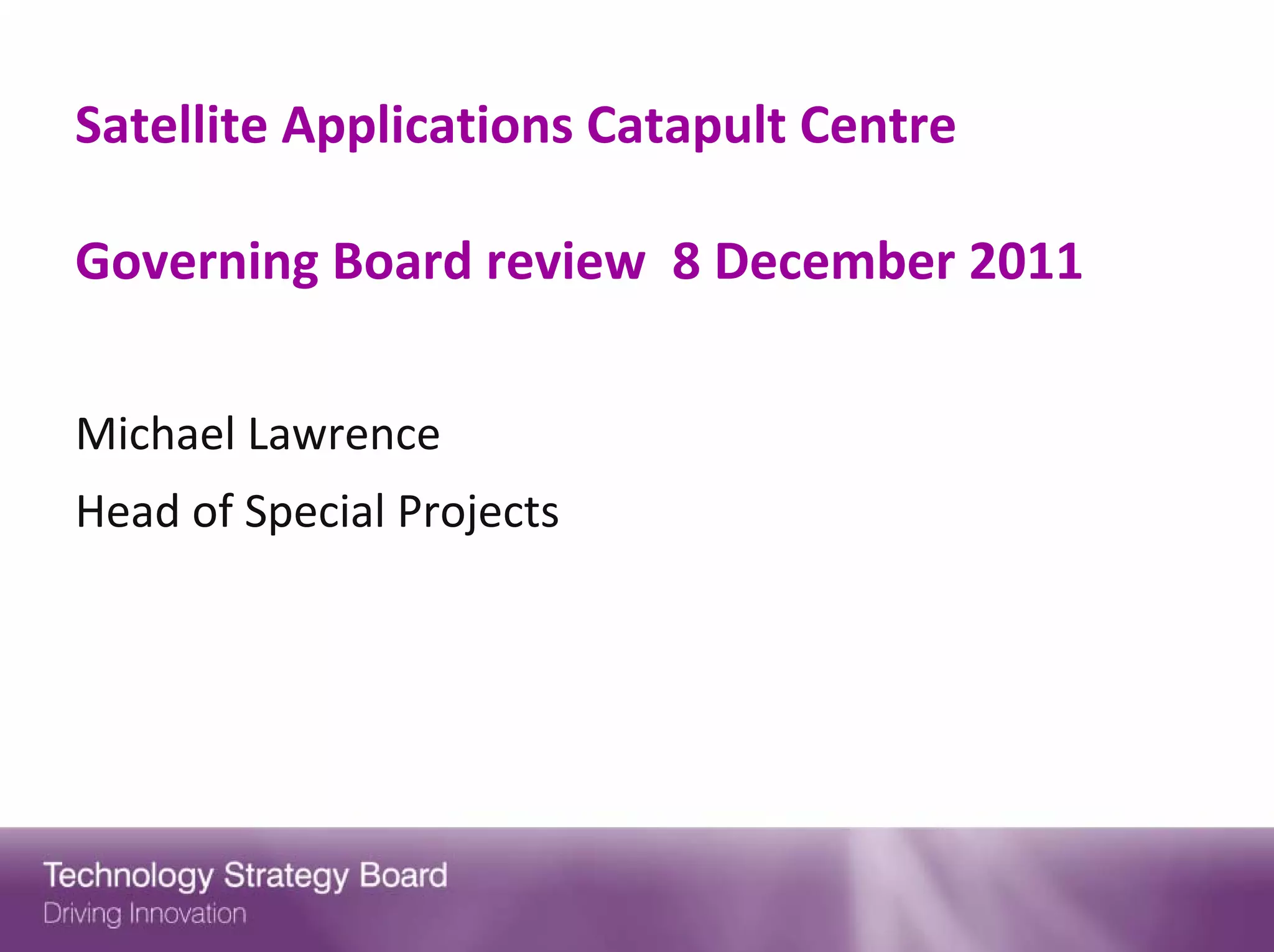 The document proposes establishing a Satellite Applications Catapult Centre to drive innovation in satellite technology and applications. Satellites can provide global communications, broadcasting, positioning and observation. The centre would provide end-to-end capabilities to help ideas commercialize, link existing space companies with new players, and prototype new applications like mobile communications and environmental monitoring to generate economic growth. It recommends establishing the centre to help overcome challenges of commercializing research and industrializing innovations in satellite technologies.