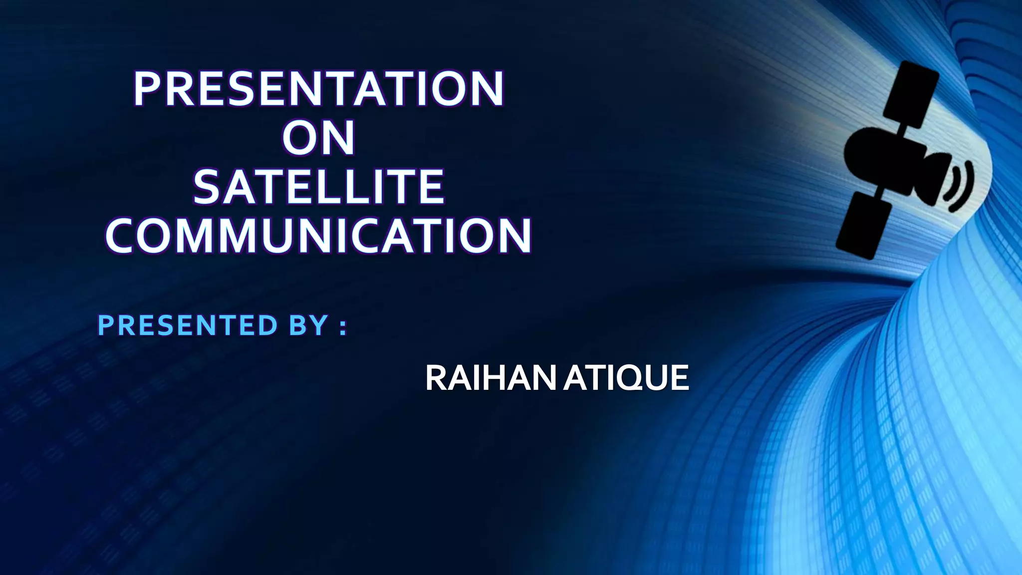 Satellite communication plays a vital role in global telecommunications. A satellite is an object that revolves around another object due to gravitational forces. There are two types of satellites: passive satellites that simply reflect signals, like the Moon, and active satellites that have onboard processing equipment to act as repeaters. The first artificial satellite, Sputnik 1, was launched in 1957. Key components of satellite communication systems are the space segment including the satellite, and the ground segment including earth stations. Satellites can be in either geostationary orbit or non-geostationary orbits, and provide important one-way and two-way communication services with many advantages.