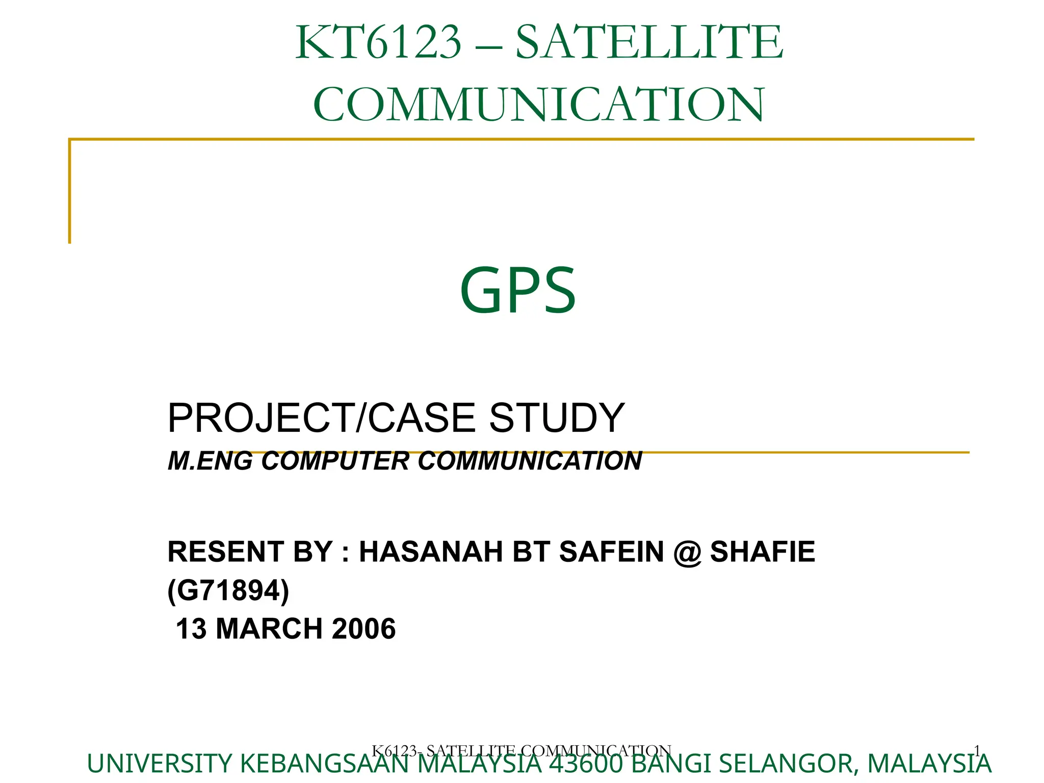 The document provides an overview of the Global Positioning System (GPS), detailing its satellites, operational mechanics, signal errors, and applications. GPS consists of a constellation of 24 satellites that enable precise location tracking anywhere in the world, improving accuracy post-2000 after the discontinuation of selective availability. It also highlights the technological components of GPS receivers and their vital role in determining position and time using satellite signals.