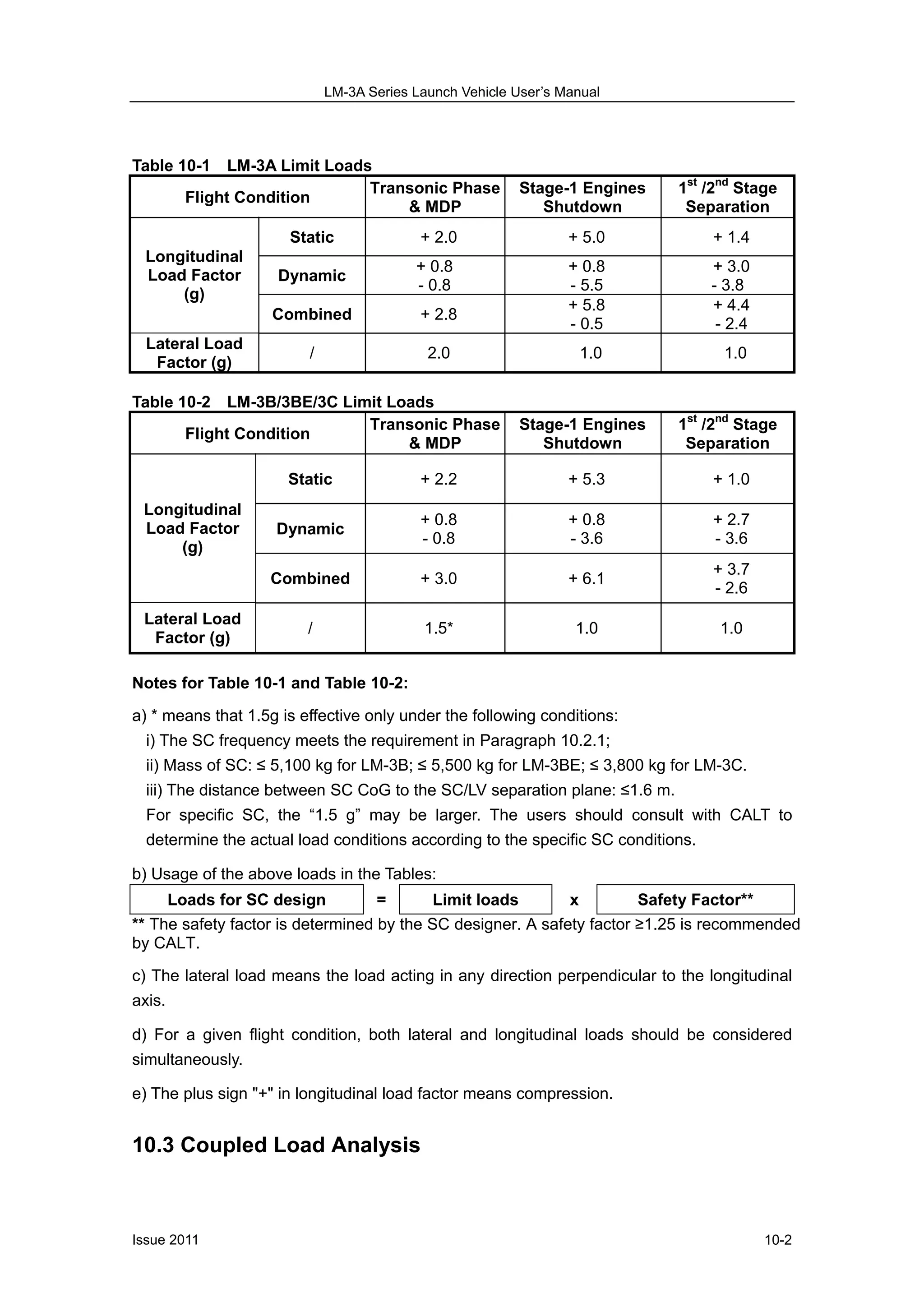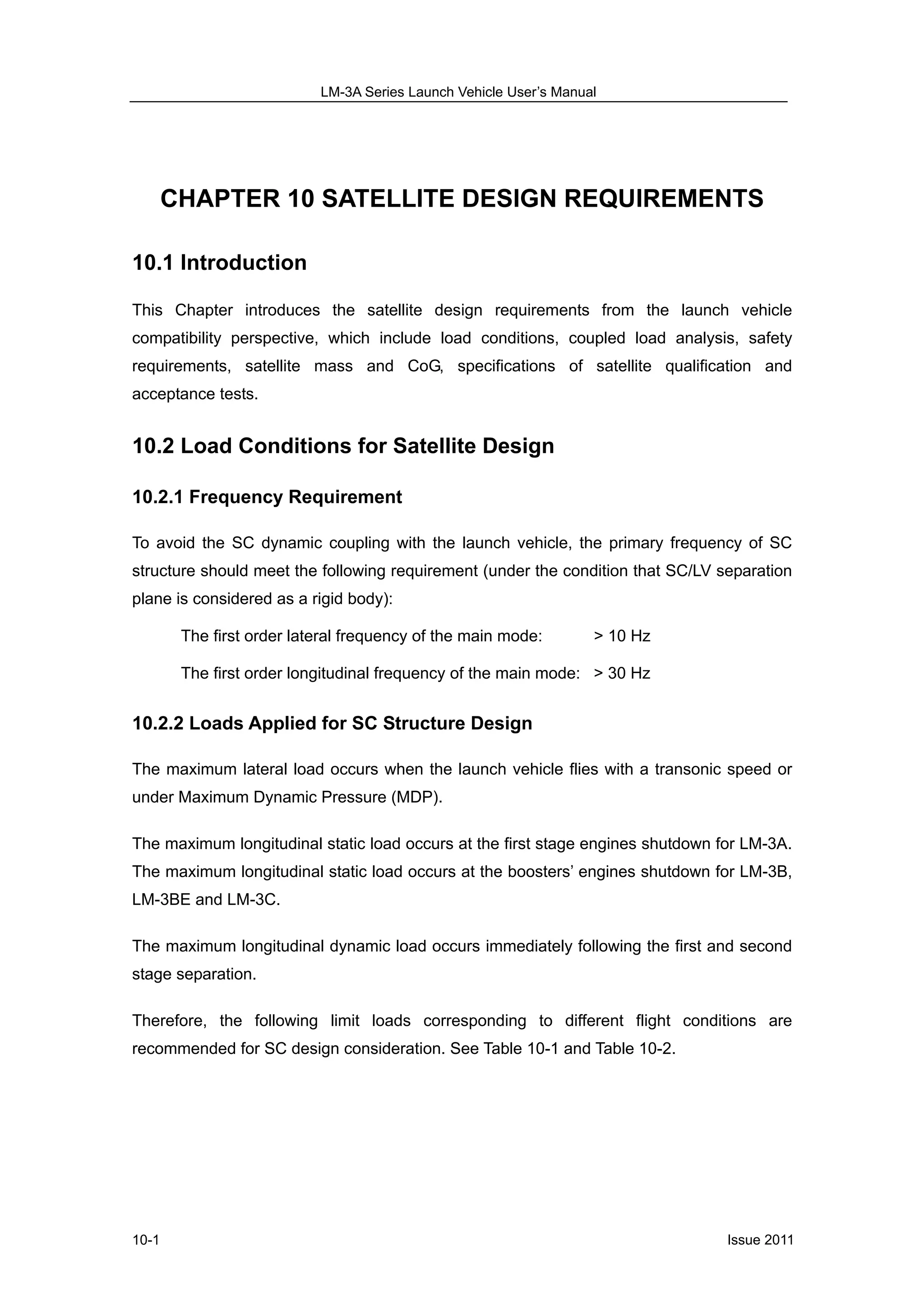 - Structural frequency and load requirements to avoid dynamic coupling with the launch vehicle. Maximum load factors during different flight conditions are provided.