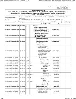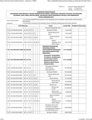 Dokumen tersebut merupakan Lampiran II Peraturan Bupati Pakpak Bharat Nomor 2 Tahun 2021 tentang Penjabaran APBD Kabupaten Pakpak Bharat menurut Urusan Pemerintahan Daerah, Organisasi, Program, Kegiatan, Sub Kegiatan, Kelompok, Jenis, Objek, Rincian Objek, Sub Rincian Objek Pendapatan, Belanja, dan Pembiayaan Tahun Anggaran 2021 untuk Satuan Polisi Pamong Praja, Pemadam Kebakaran dan Penyelamat