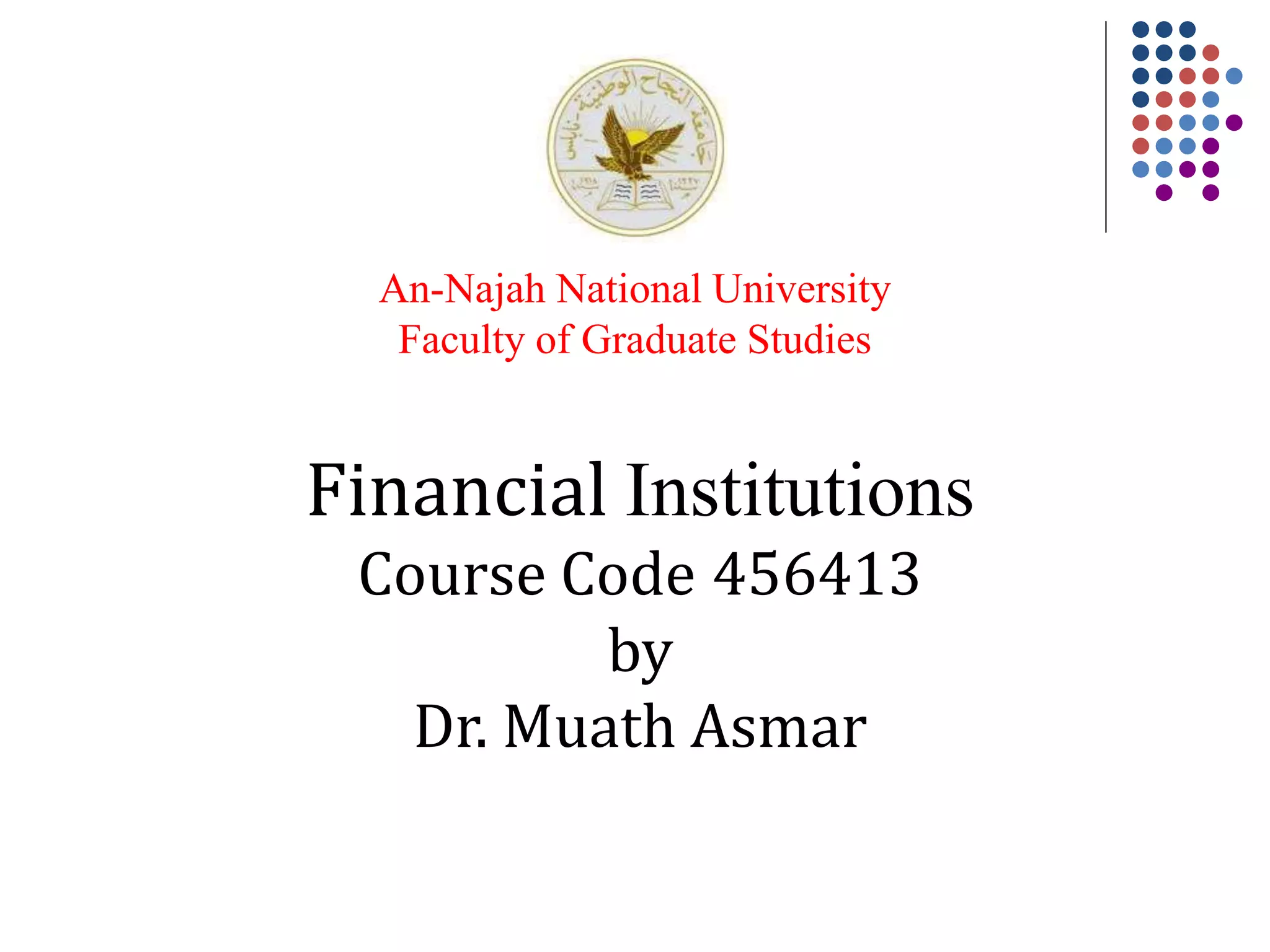 Commercial banks are the largest financial institutions in terms of assets. They accept deposits and make loans. Their major assets are loans and investment securities, while deposits are their major liabilities. Banks play essential roles in payment services, maturity transformation, and monetary policy transmission. They are regulated to protect these services from disruption. Large banks engage in both retail and wholesale banking globally, while community banks focus on local retail banking. The number of banks has declined due to mergers and acquisitions.
