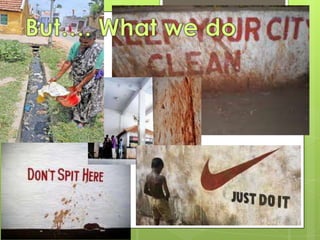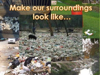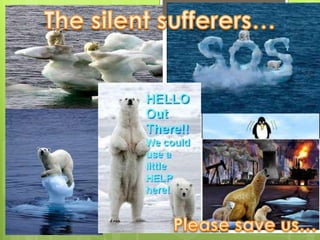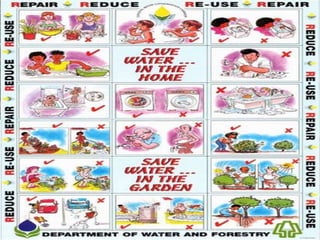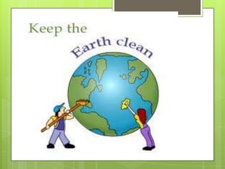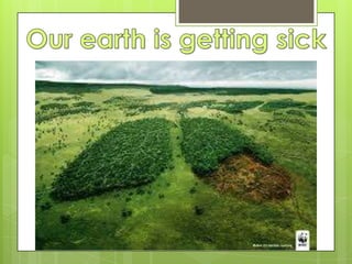 This document discusses several environmental issues and calls on the reader to take action. It notes that deforestation is resulting in fewer trees being left on Earth. Global warming will lead to rising ocean levels while fresh water supplies are already alarming. The document urges readers to use less water by fixing leaks, turning off taps while brushing teeth, and collecting rinsing water. It notes that drug and alcohol addiction is harming people's health. In conclusion, it states that individual actions can help build a better tomorrow.