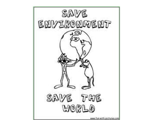 The document discusses various environmental problems, including air pollution, acid rain, and global warming, emphasizing their human-induced causes and detrimental effects on health and ecosystems. It also provides actionable suggestions for saving the environment, such as proper waste disposal, reducing noise pollution, conserving water, instilling environmental awareness in children, and recycling. The overarching message is the importance of collective responsibility and individual actions in protecting the planet.