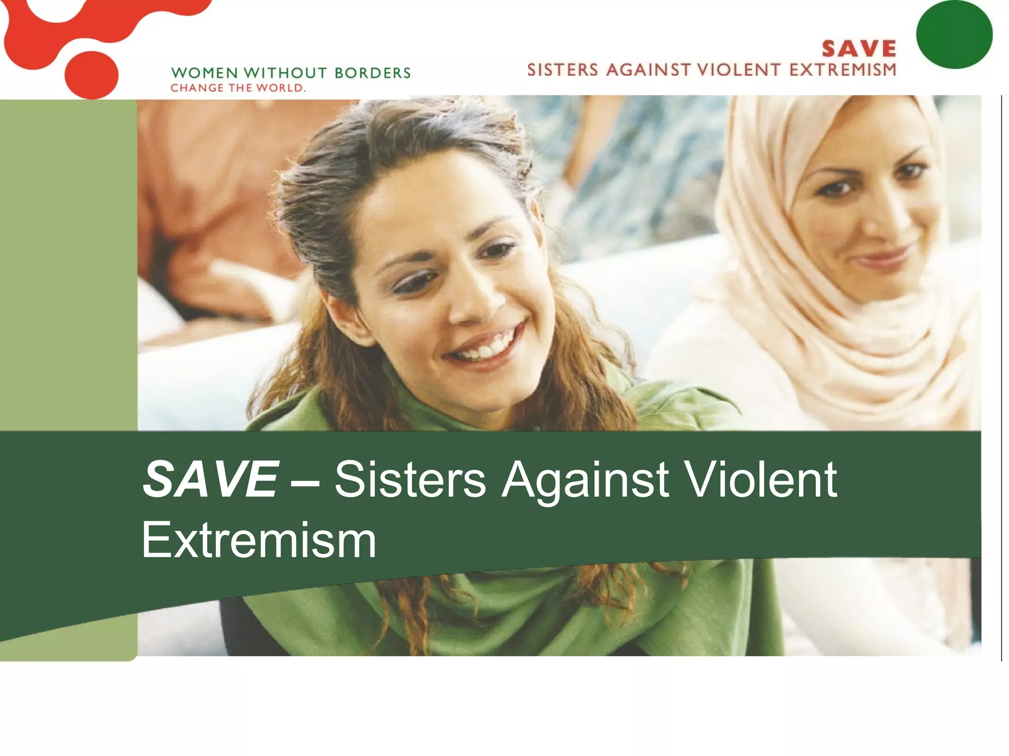 SAVE (Sisters Against Violent Extremism) is the world's first female counterterrorism platform aimed at empowering women to combat extremist ideologies and contribute to peace-building globally. It engages various groups, including mothers, schools, and NGOs, and currently operates in several countries while advocating for women's leadership in security and de-radicalization efforts. The initiative highlights the importance of connecting mothers across conflicts to promote understanding and reconciliation.