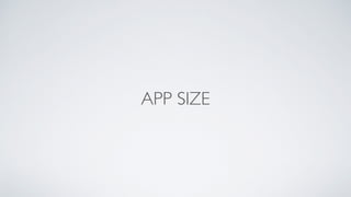 This document discusses tips for reducing APK size for mobile apps. It begins by analyzing the current state of an app's APK size of 62MB in mid-2016. Various graphics optimization techniques are explored, such as using vector drawables, image formats like WebP, and resource shrinking. These optimizations reduced the APK size by 73% to 17MB by today. The document provides recommendations like optimizing graphics, experimenting with different image formats, using vector drawables, and using the APK analyzer tool.
