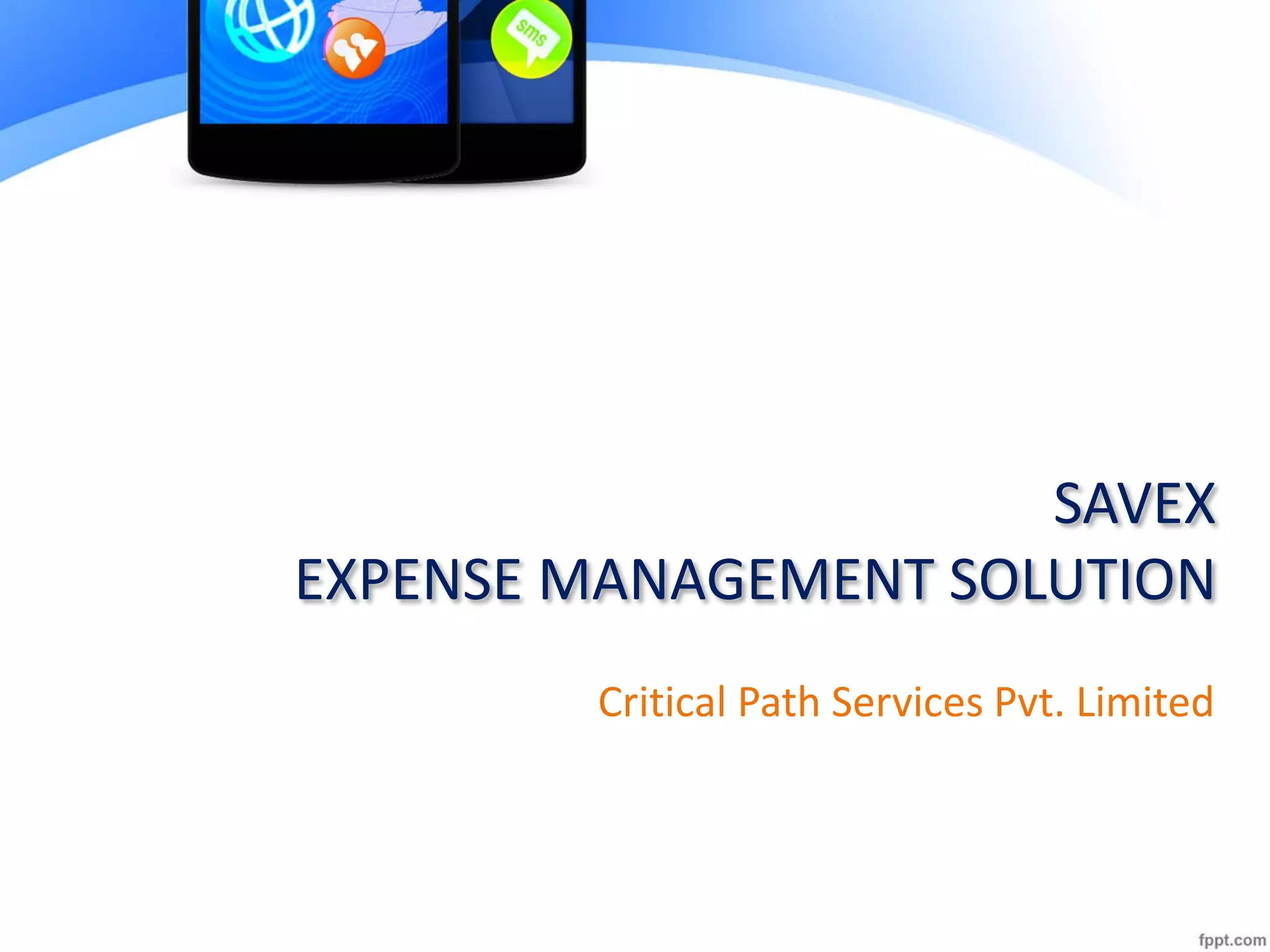 SAVEX is an expense management solution that aims to be the market leader in improving enterprise efficiency through sustainable expense management. Its vision is to be a responsible corporate citizen and segment leader through innovation-led expense management and digital connectivity software. The goal is to become the preferred global vendor for digital connectivity lifecycle management and expense management over the next 5-7 years. SAVEX provides a SAAS expense management solution hosted on Google Cloud that helps users improve decisions, accelerate operations, reduce costs, and increase efficiency through user-friendly features that adapt to company workflows.
