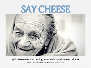 The document introduces the 'Power Pics' series from Manage Train Learn, which offers a collection of images for use in presentations and commercial work. Users can select images based on themes and either utilize them as-is or modify them where license permits. All images are sourced from Creative Commons licenses and are attributed where required.