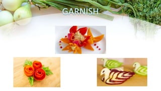 1. Dokumen tersebut membahas tentang sayuran, termasuk pengkelasannya berdasarkan bagian tumbuhan dan warna, fungsinya dalam menu, cara persiapan dan teknik memasaknya seperti saute, bake, boiled, steam, braised, stewing, simmering, dan blanching.