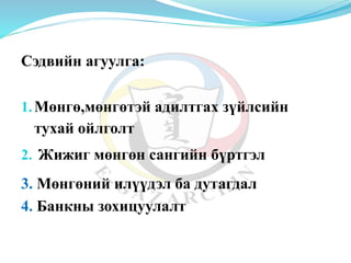 Санхүүгийн үйл ажиллагаатай холбоотой зөвлөмж PPTX