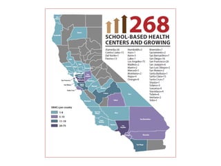 The document outlines the role and importance of school-based health centers (SBHCs) in California, aiming to improve health and academic success for students. It provides guidance on planning, implementing, and operating SBHCs, emphasizing collaboration among school districts, health providers, and community agencies. Key elements include the services offered, target populations, and best practices for integrating health care within the school environment.