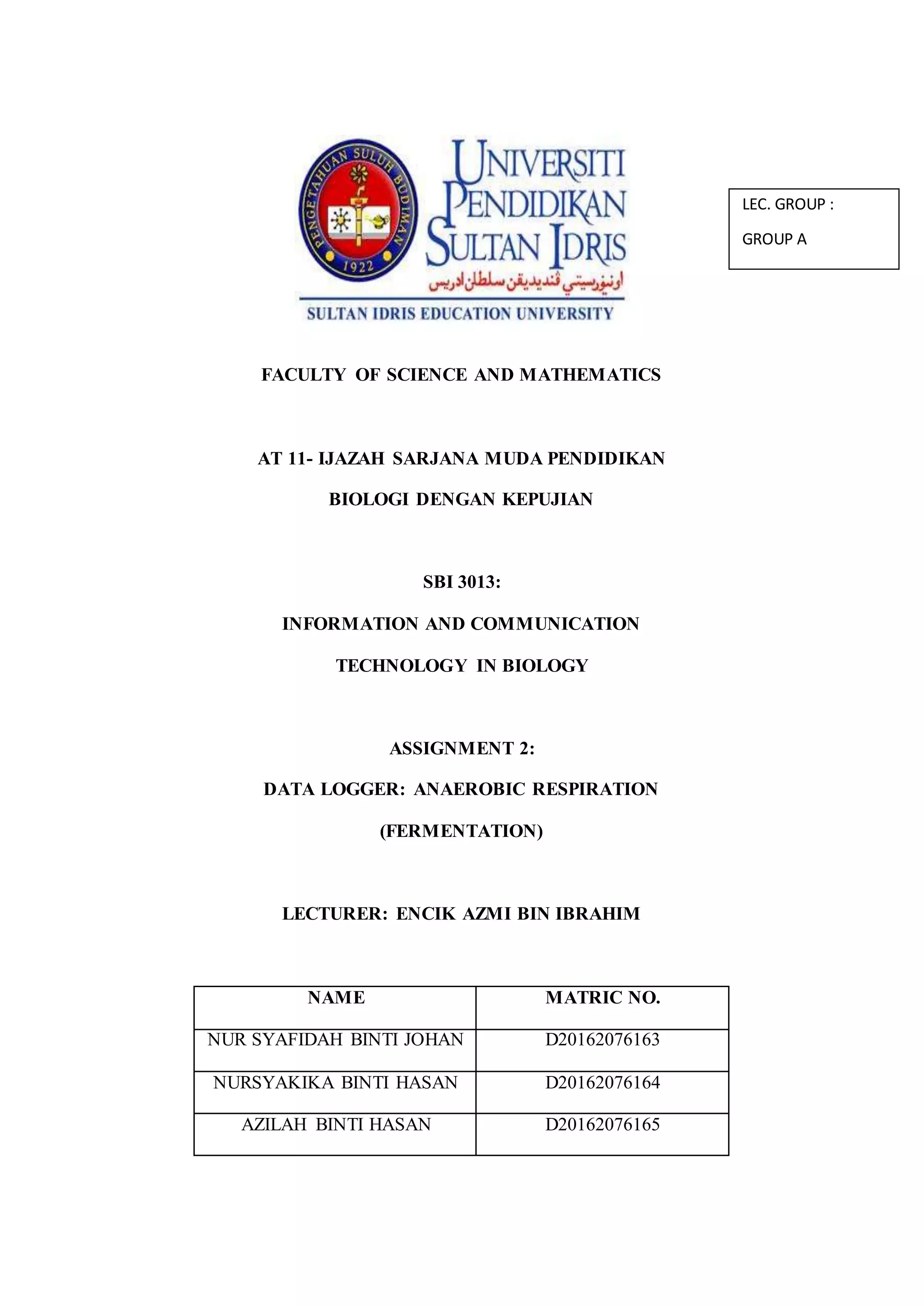 The document describes an experiment using a data logger to measure carbon dioxide production during yeast fermentation of glucose solutions at different concentrations. Yeast were mixed with 5%, 10%, and 15% glucose solutions and a carbon dioxide sensor logged measurements every 10 seconds over 10 minutes. Higher carbon dioxide production and faster fermentation rates occurred with the 5% solution compared to 10% and 15%. Data loggers offer accurate, automated data collection without human error. They have advantages for remote or continuous monitoring but also limitations like sensor calibration and missing unexpected events.