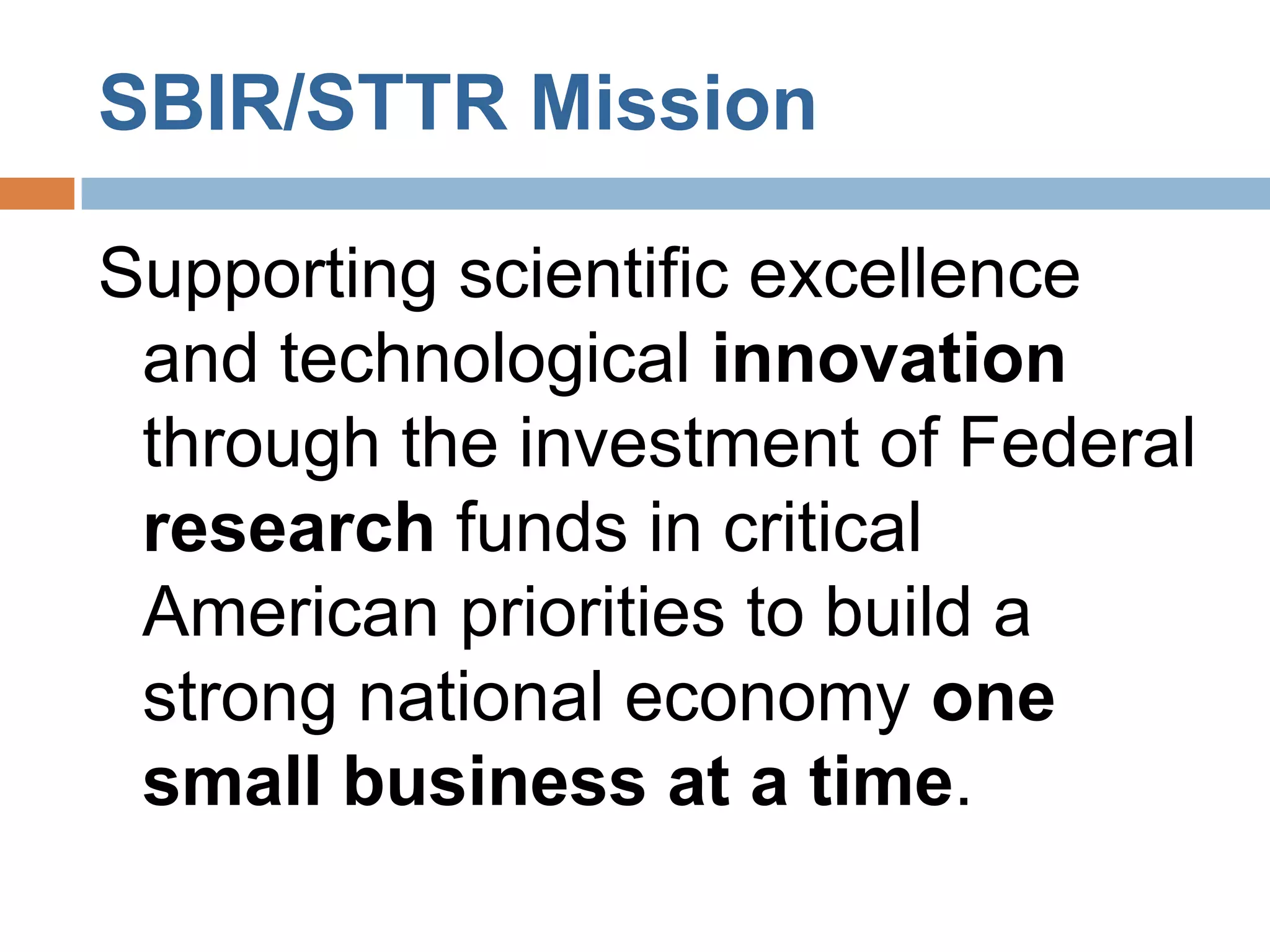 The document provides an overview of the SBIR/STTR programs which allocate over $2.4 billion annually to support small businesses in developing innovative technologies. SBIR grants are awarded in three phases to support proof of concept, prototype development, and commercialization. Key changes to the programs through recent reauthorization include increased funding percentages, new application and registration requirements, and a greater focus on commercialization outcomes. The document outlines eligibility criteria, participating agencies, and upcoming application deadlines to help small businesses navigate and take advantage of SBIR/STTR funding opportunities.