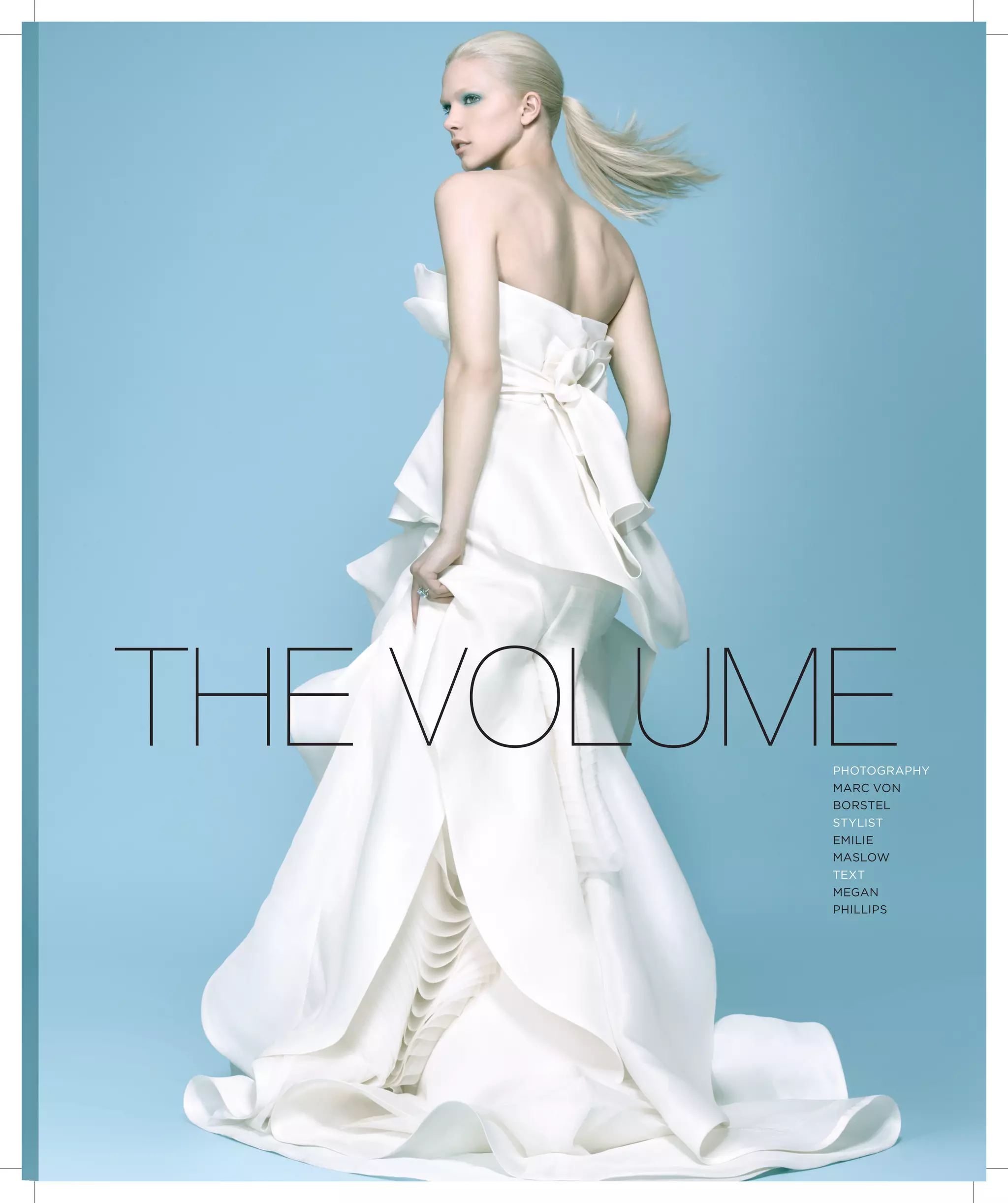 This document appears to be from a bridal magazine and features descriptions and photos of wedding dresses. It includes summaries of multiple elegant gowns with details on styles, designers, materials, and pricing. The dresses showcase intricate detailing, dramatic silhouettes, and luxurious fabrics like taffeta, chiffon, and silk organza. Accompanying the gowns are jewelry pieces from designers that complement the romantic bridal aesthetics.
