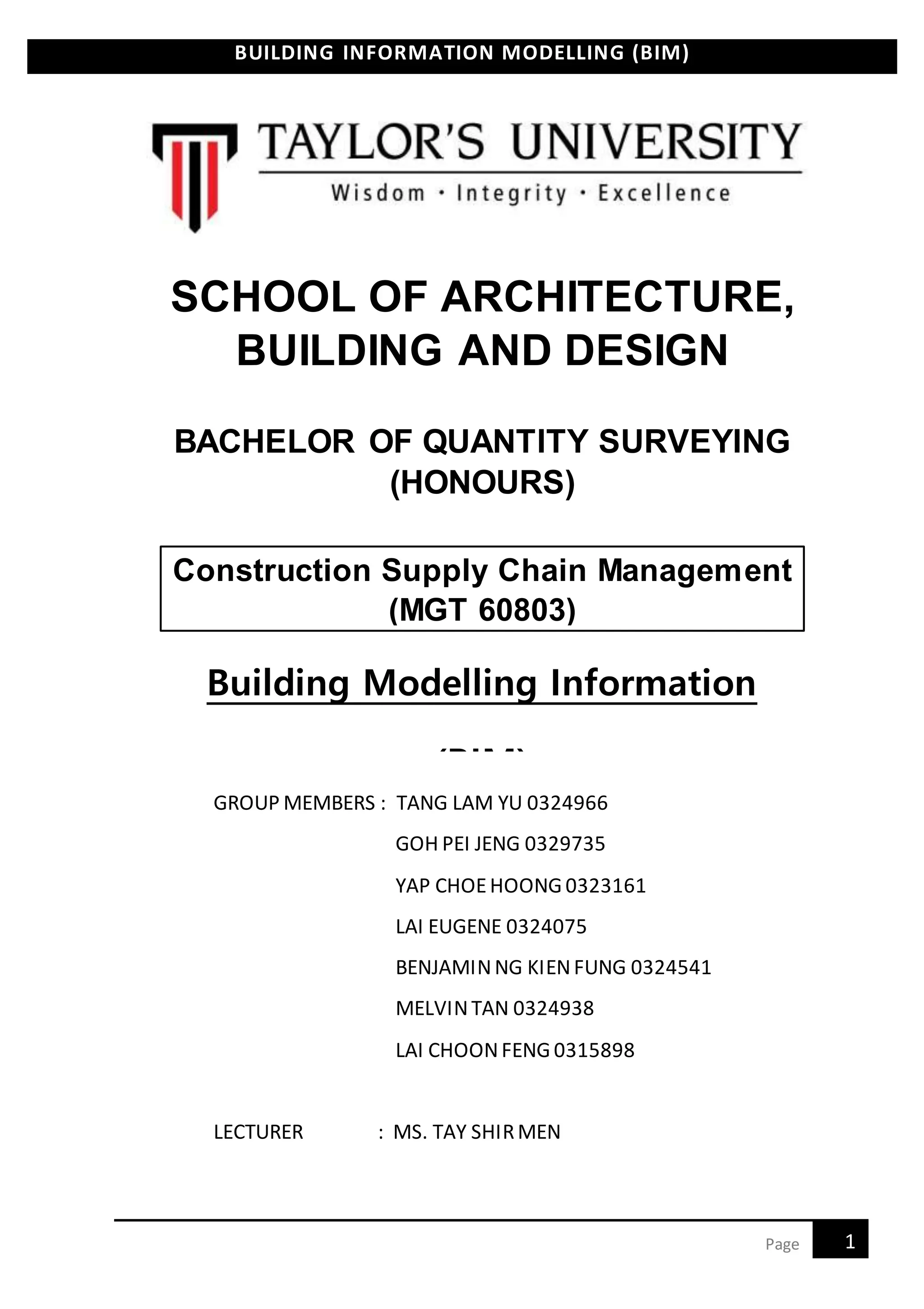 This document provides an overview of Building Information Modelling (BIM) and its various dimensions. It discusses BIM, the BIM cycle, and dimensions such as 3D, 4D, 5D, 6D, and 7D BIM. For each dimension, it provides an introduction, example software, advantages and disadvantages. The goal of BIM is to create and manage information about a building project using a digital 3D model and shared database. Adding additional dimensions such as time (4D) and cost (5D) allows for improved planning, cost estimation, and sustainability analysis over the lifespan of a building project.