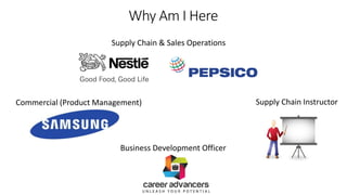 The document provides an overview of supply chain operations for startups, outlining various topics like determining optimal service levels for customers, sales and operations planning, demand forecasting techniques, procurement strategies, and inventory management best practices. It also lists various metrics and KPIs to measure supply chain performance and provides resources for further learning on supply chain management.