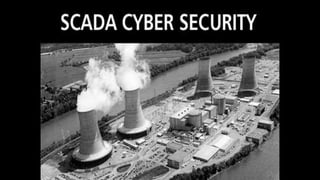 The document discusses SCADA (Supervisory Control and Data Acquisition) systems, detailing their purpose, benefits, communication methods, protocols, and the importance of cybersecurity. It outlines various types of SCADA networks, attack vectors, and penetration testing methodologies designed to identify vulnerabilities in these systems. Finally, it emphasizes the necessity of implementing security measures and policies to protect SCADA networks from potential cyber threats.