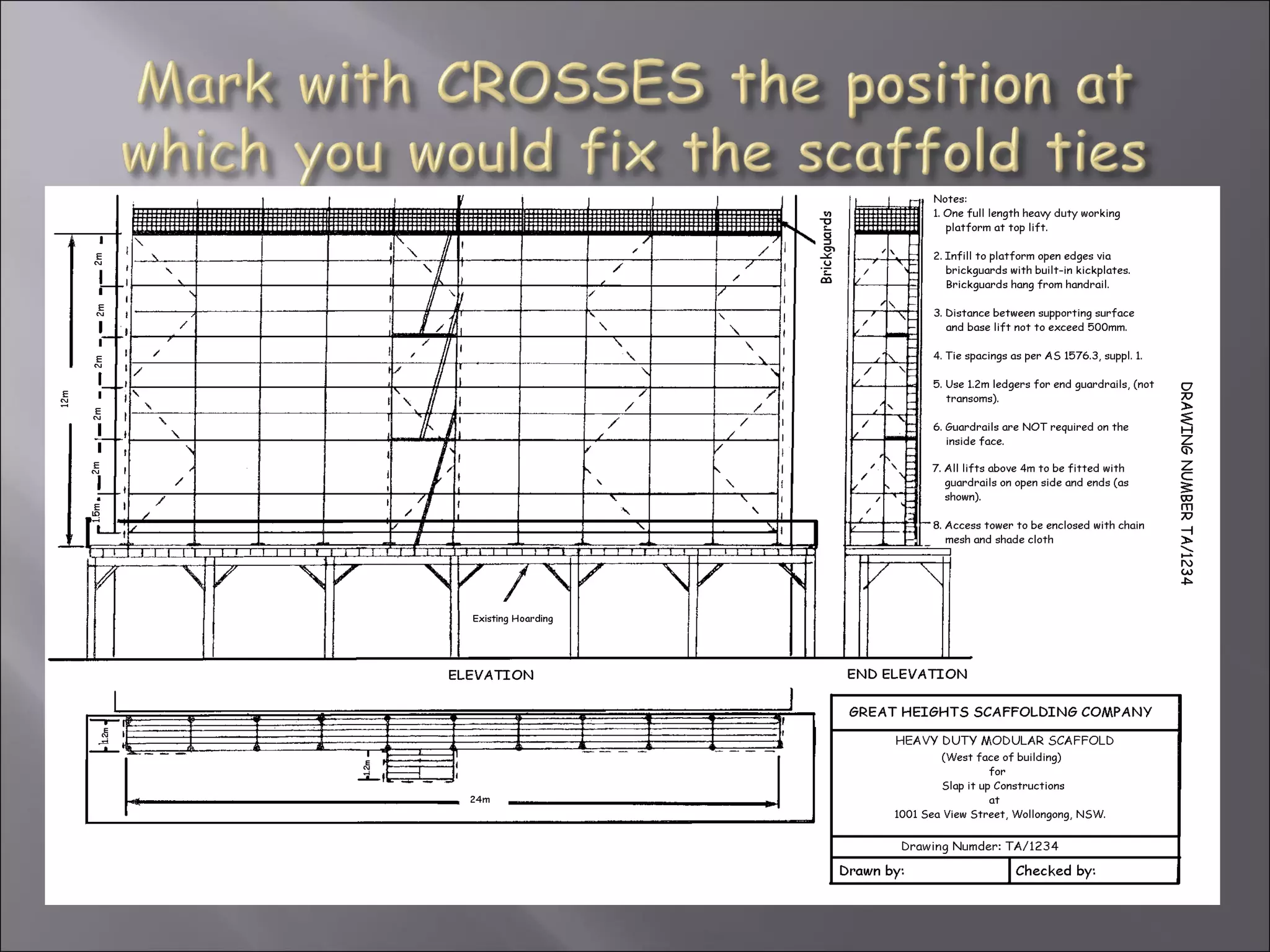 The scaffolding handover certificate outlines the key details of the erected scaffold including the client name, site address, scaffold location, type of scaffold, number of working platforms and lifts, scaffold height and dimensions, access type, design drawing reference, and handover date and time signed by the responsible scaffolder.